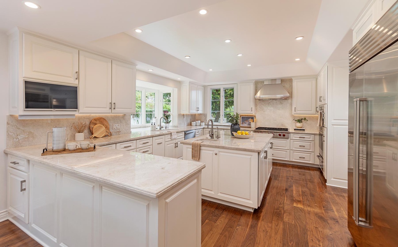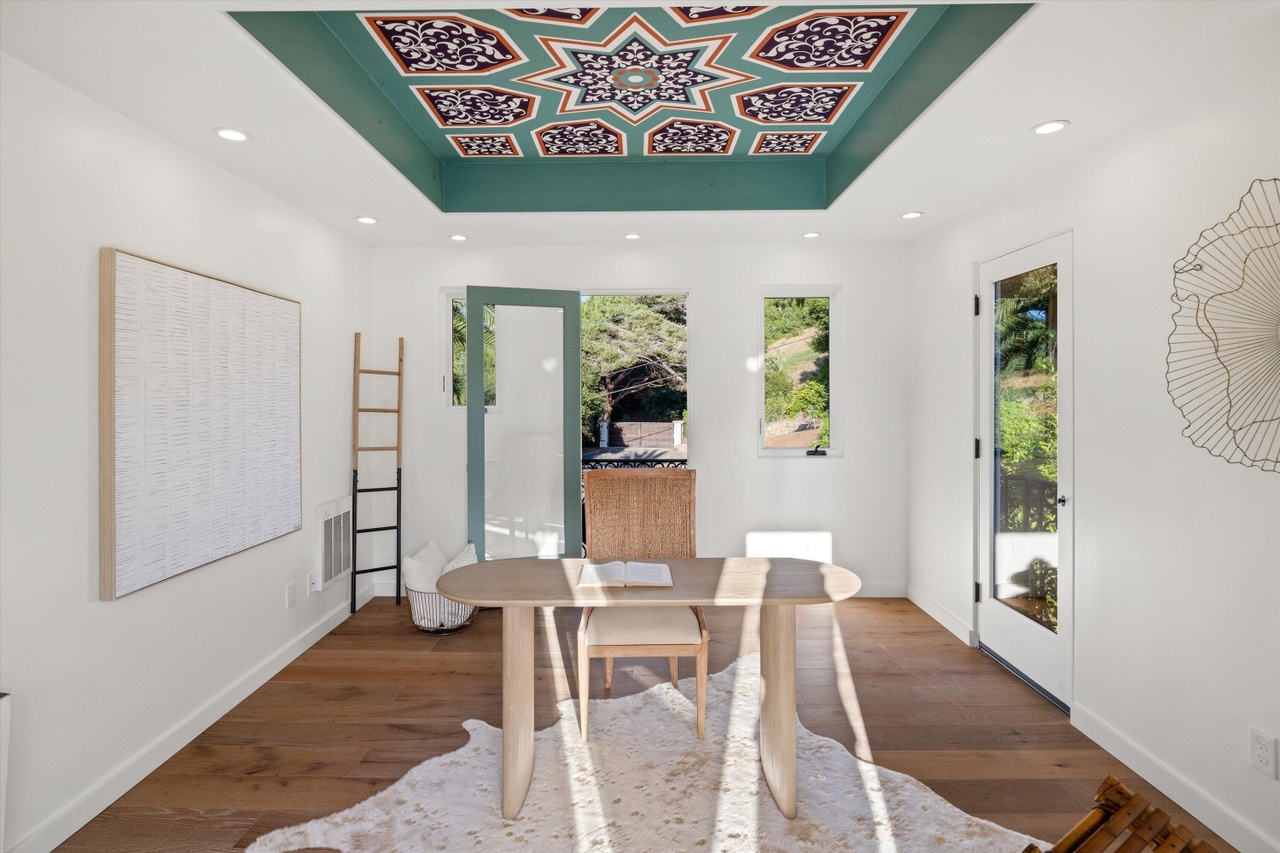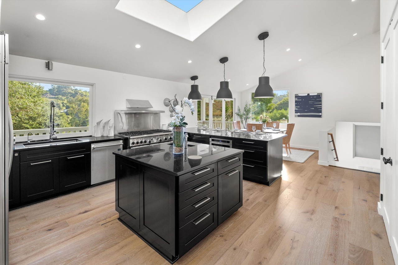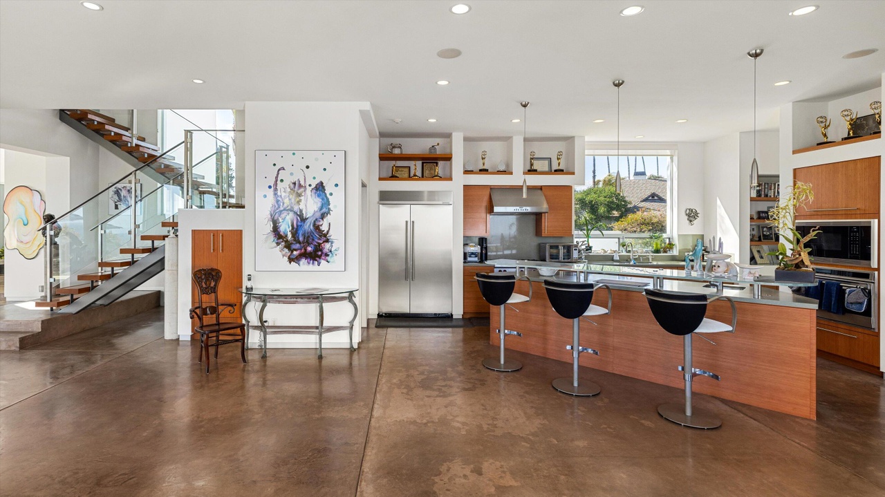 In the eight-home Santiago Hills community on the Riviera, 2220 Santiago Road ($5.995 million) feels extremely livable, as long as you can abide the upstairs primary. (An elevator could be added.) The rooms are spacious and gracious, and while some of the surfaces—and all of the bathrooms—could stand a refresh, this is not an emergency situation. In a perfect world, there would be more usable outdoor space for a 4,776-square-foot house, but you can always hang out at the communal pool, clubhouse, and tennis/pickleball court just up the street.