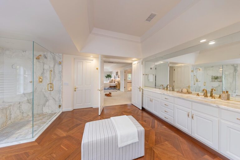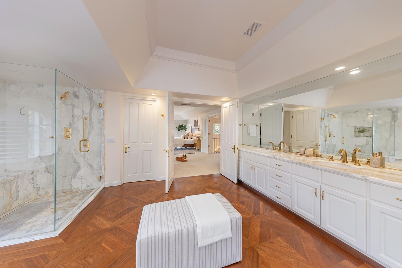 The 1907 Georgian Revival house at 1731 Santa Barbara Street ($7.395 million) has been thoroughly cleaned up since the current owner bought it in May 2019 for $2.175 million. Don’t hold the paleness against it: I assume this is a spec reno, and the idea is that you can add personality as you see fit. Located at the corner of E. Islay Street, the .37-acre lot is roomy for the Upper East, but the listing doesn’t show the backyard. (UPDATE: It does mention a new pool and spa.) As tends to be the case with these grandes dames, there are fewer bathrooms than modern-day people expect. The primary bath is quite large—possibly bigger than the bedroom itself—but the other two bedrooms in the main part of the house share a Jack-and-Jill, and the two-story guest quarters embedded in the house has the bathroom on the ground floor and the two bedrooms upstairs.