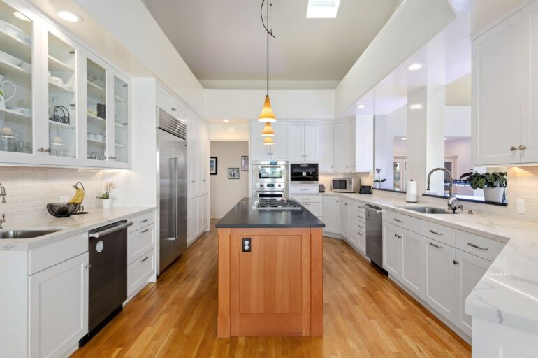 Settings don’t come more dramatic than at 5297 Austin Road ($5.25 million), at the edge of the bluff in More Mesa Shores, the private community just west of More Mesa. The house was built in 2009 by makeup artists Tom and Bari Burman—love the Emmys in the kitchen—in an effort to marry “Tom’s love for thick, white walled Greek-style structures and Bari’s taste for modern design.” Some of the finishes would benefit from updating, but there may be limits to how much you want to invest, given the potentially precarious location. Ask a geologist what the odds are of erosion affecting the property—and if it does, then what? P.S. The “video tour” is about the sellers’ background to an unusual degree.