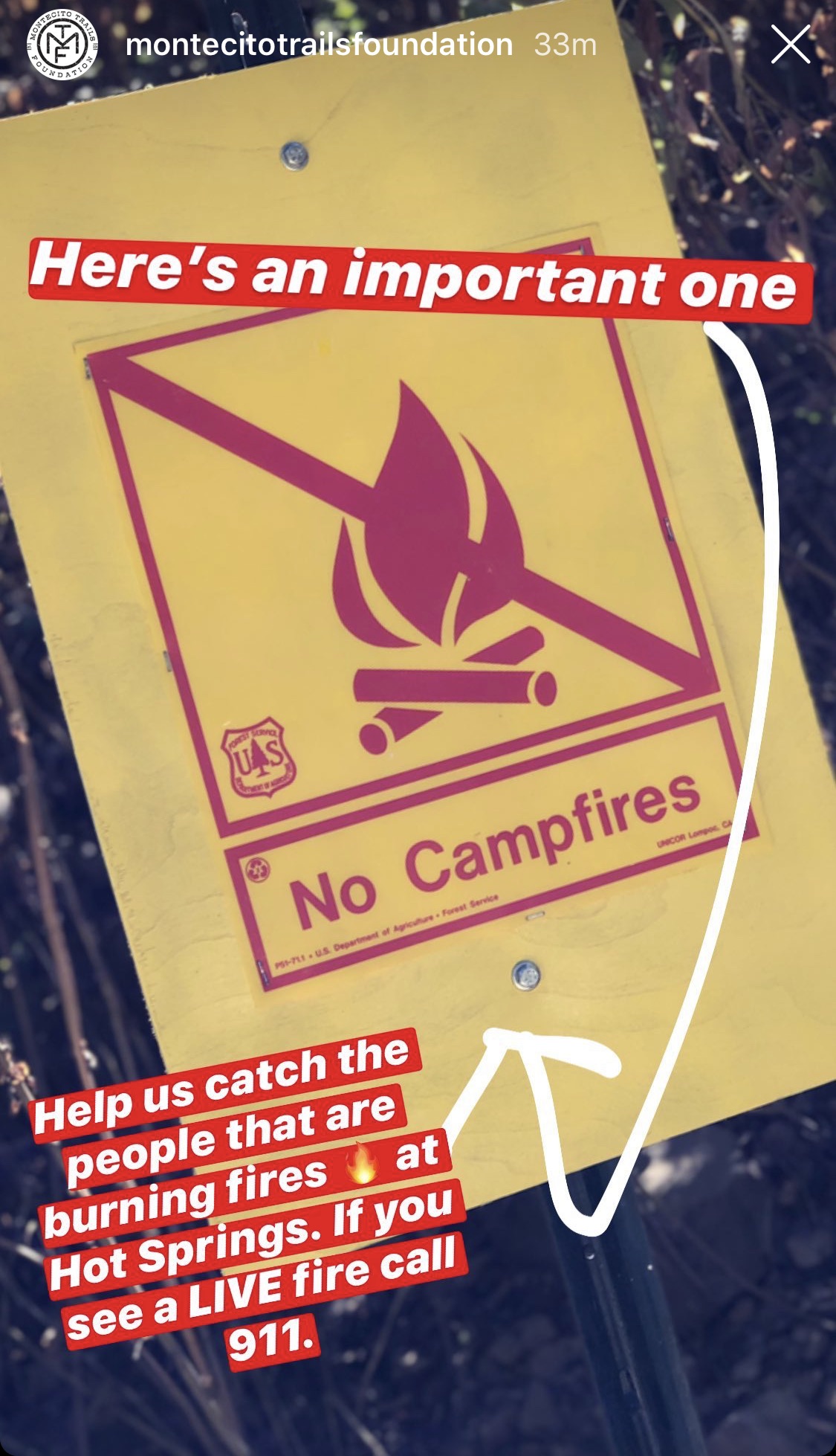 ••• Some bozo has been starting fires at the Hot Springs trailhead. If you see a fire there, reminds the Montecito Trails Foundation, call 911.