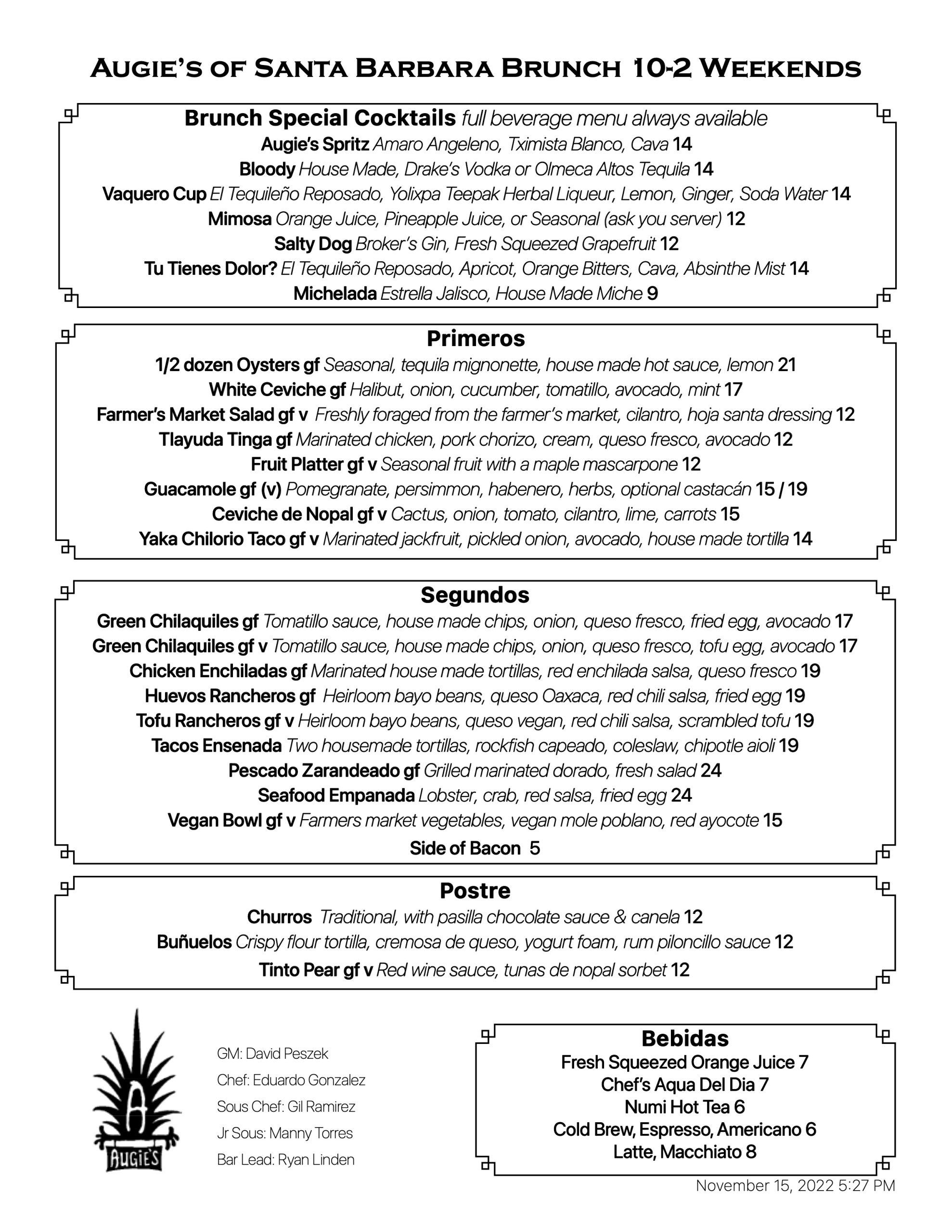 The brunch menu at Augies looks amazing. Can’t wait to try it all!