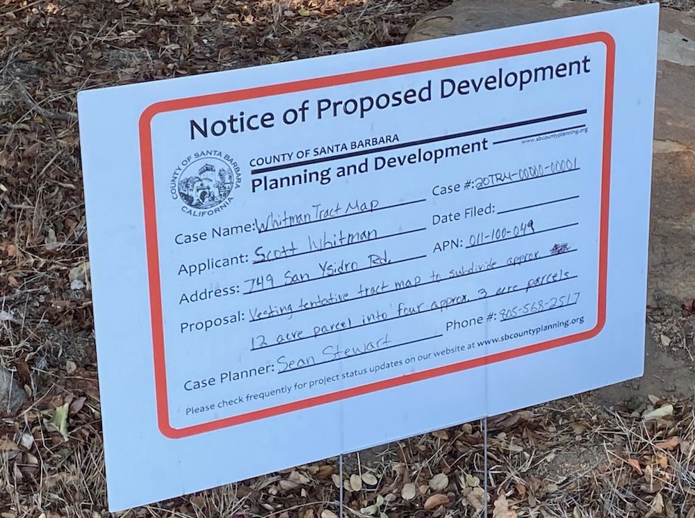 ••• 749 San Ysidro Road, the 12.77-acre property that recently came on the market for $62 million, is simultaneously looking to subdivide into four three-acre parcels.