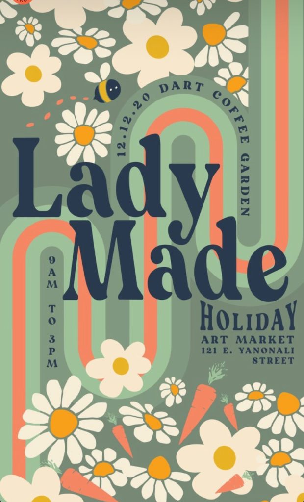 ••• And the following Saturday, December 12, a Lady Made Holiday Art Market will be at the Dart Coffee Garden, across from Dart Coffee Co.