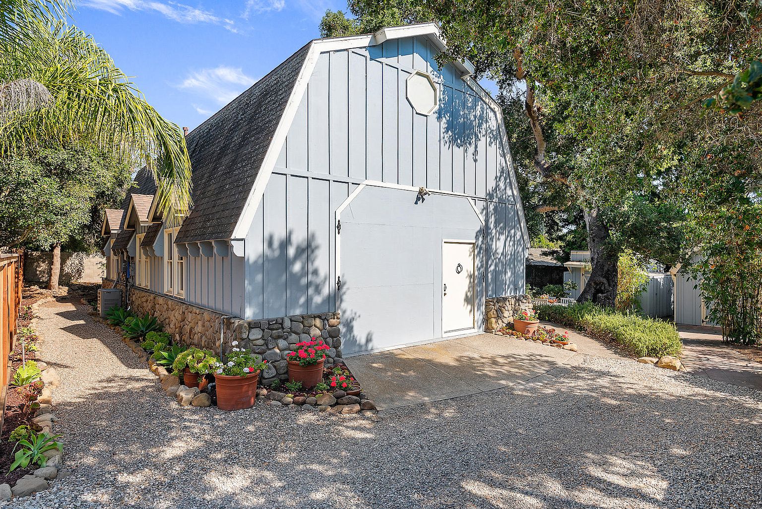An 1883 compound, 1575 East Valley Road ($3.85 million) has a “farmhouse, converted carriage house, barn, and studio.” If only one could go back to when the street wasn’t so noisy….