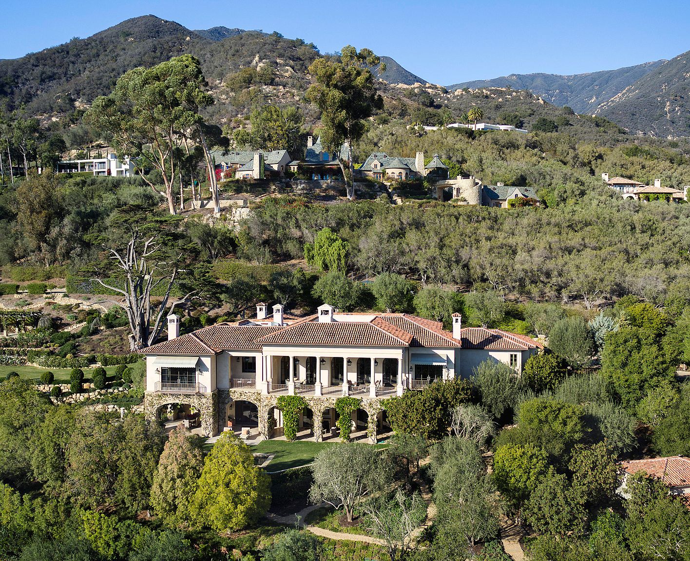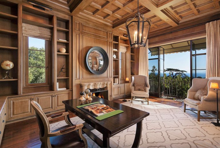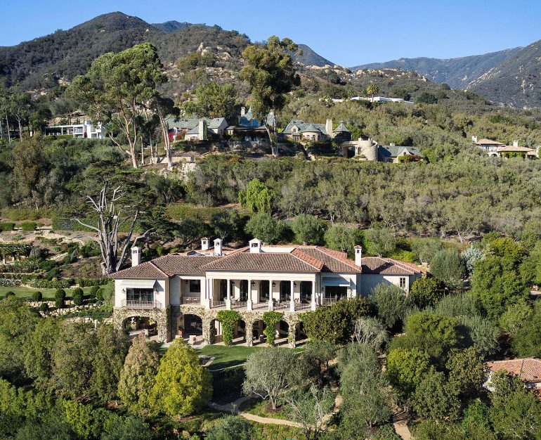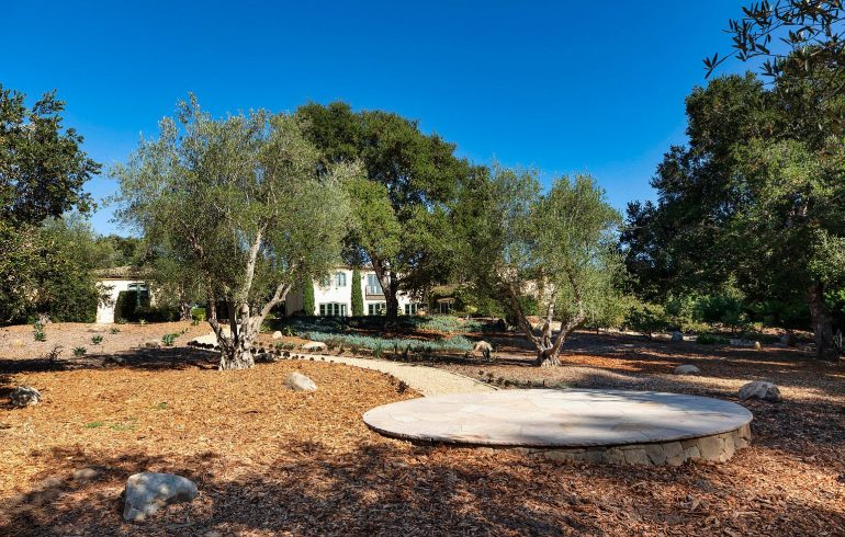313 San Ysidro Road ($9.5 million) is a 2010 house on 1.82 prime Montecito acres. The bathroom styles aren’t aging well, but the rest appears to be in good shape. P.S. What kind of ritual do you think happens on that round island in the ocean of mulch?