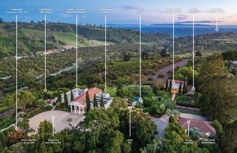 Primoya Estates is offered at $12,000,000. To see it in person, contact Chris Smith at the Bartron Real Estate Group (805-351-2474, [email protected]).