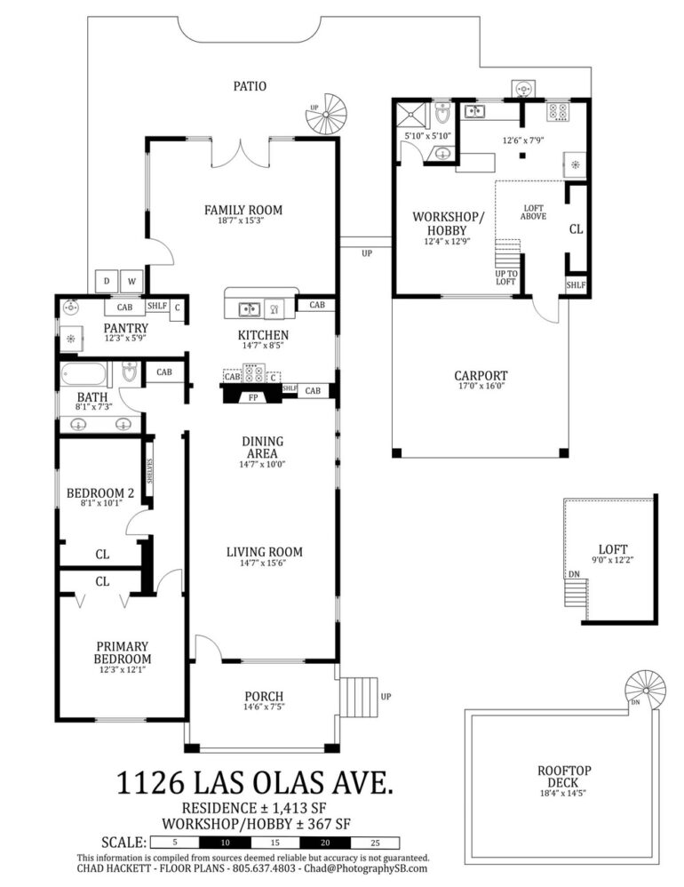 The shingled exterior is the best thing about 1126 Las Olas Avenue ($2.395 million) on the Mesa. The 1938 house is in rough shape, but if brought into the modern era—and perhaps the workshop/hobby building could be attached to the house and made into a primary bedroom?—it could be quite cute. And there’s a roof deck on the flat part in back.