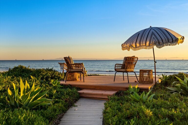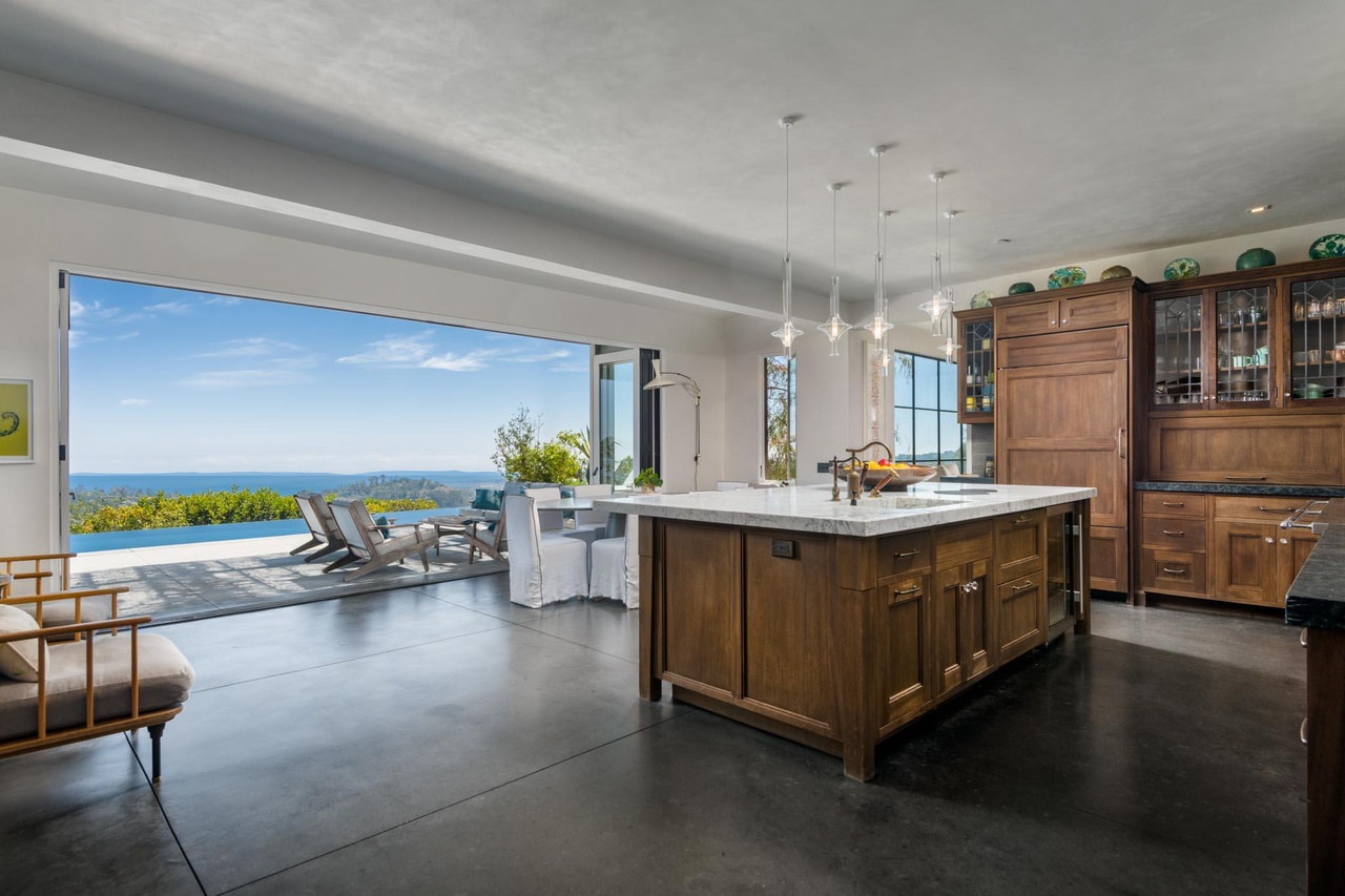 More optimism is on hand at 3519 Padaro Lane ($16.5 million). It’s a flip: the seller paid $10 million less than a month ago (!). If it sells for the asking price, it will have appreciated at the rate of $270,000 per day. Comprising a main house and a guest house, the oceanfront property looks better now—thanks to a lot of white paint, new landscaping, etc.—but it still waiting for a real upgrade to make it feel like more than a cheap-and-cheerful beach cottage.