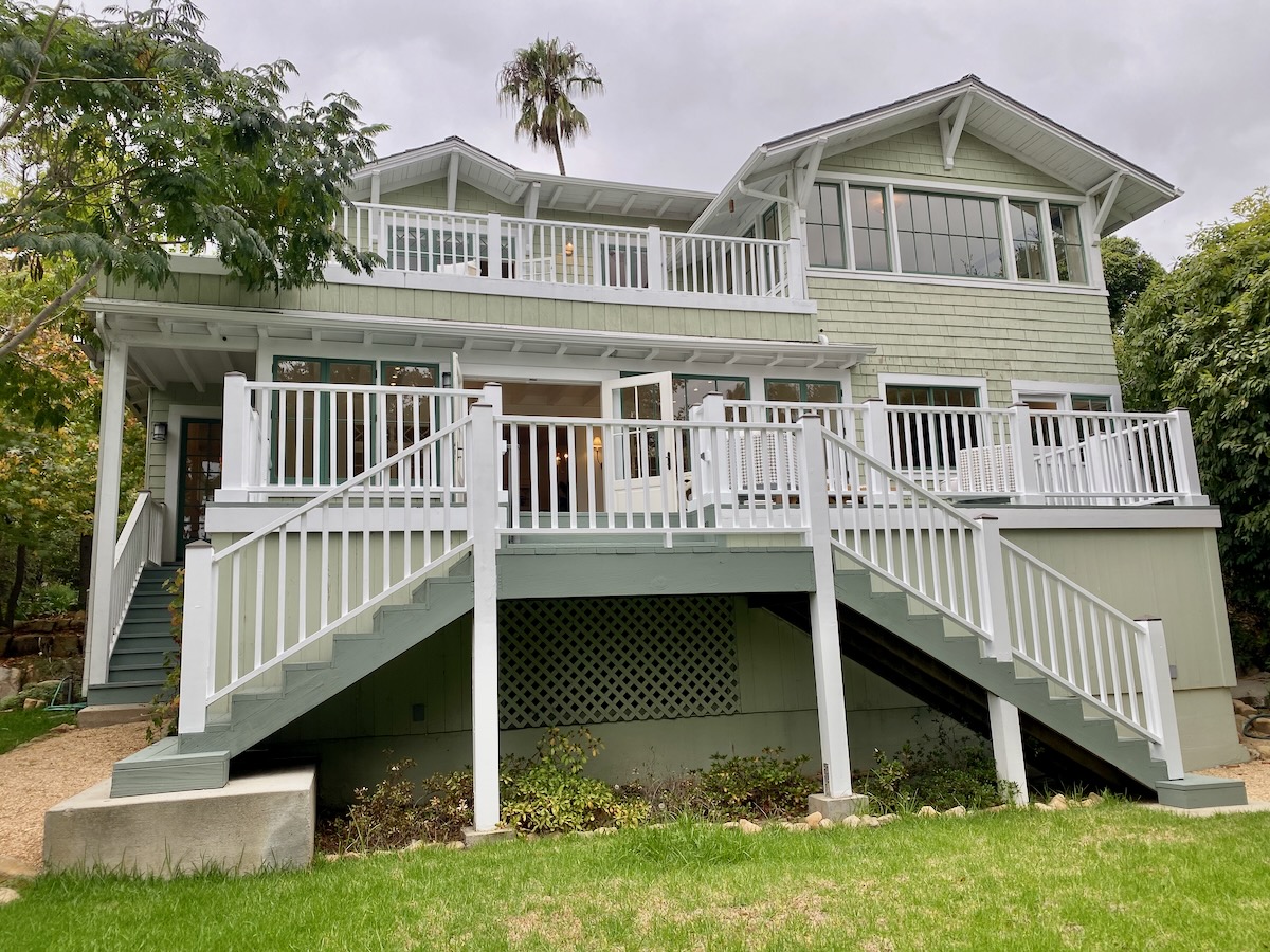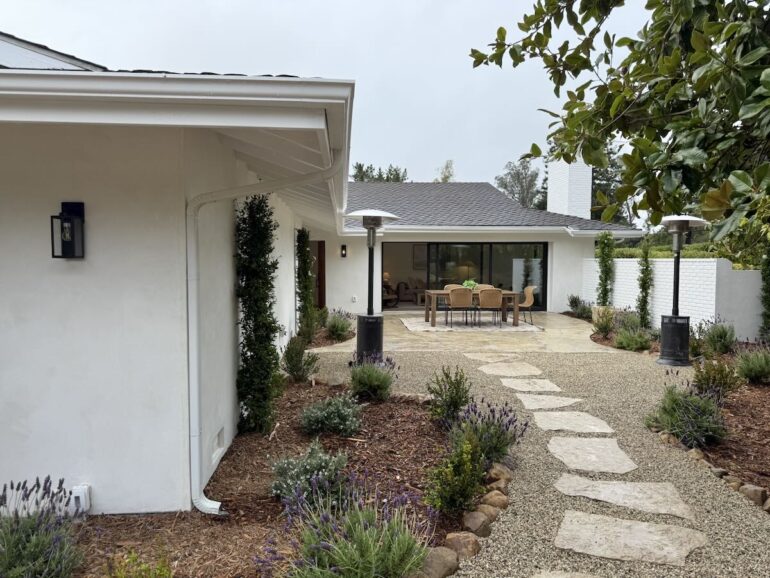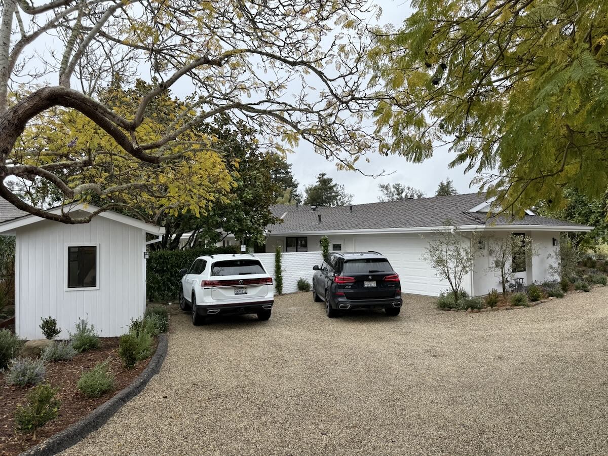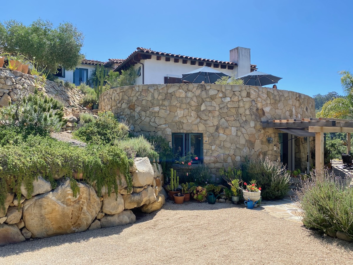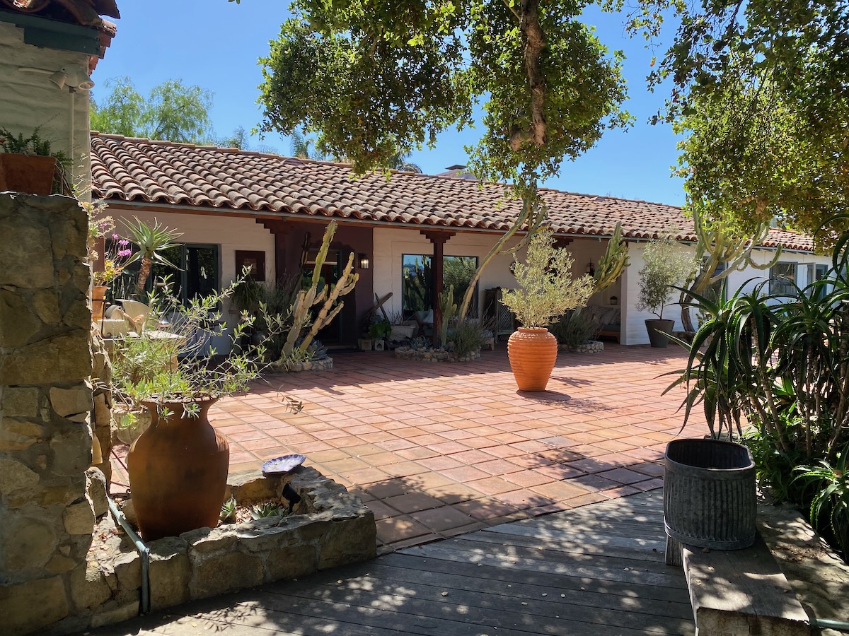 1940s adobe expanded with a huge art studio off the primary bedroom and neat hardscaping.