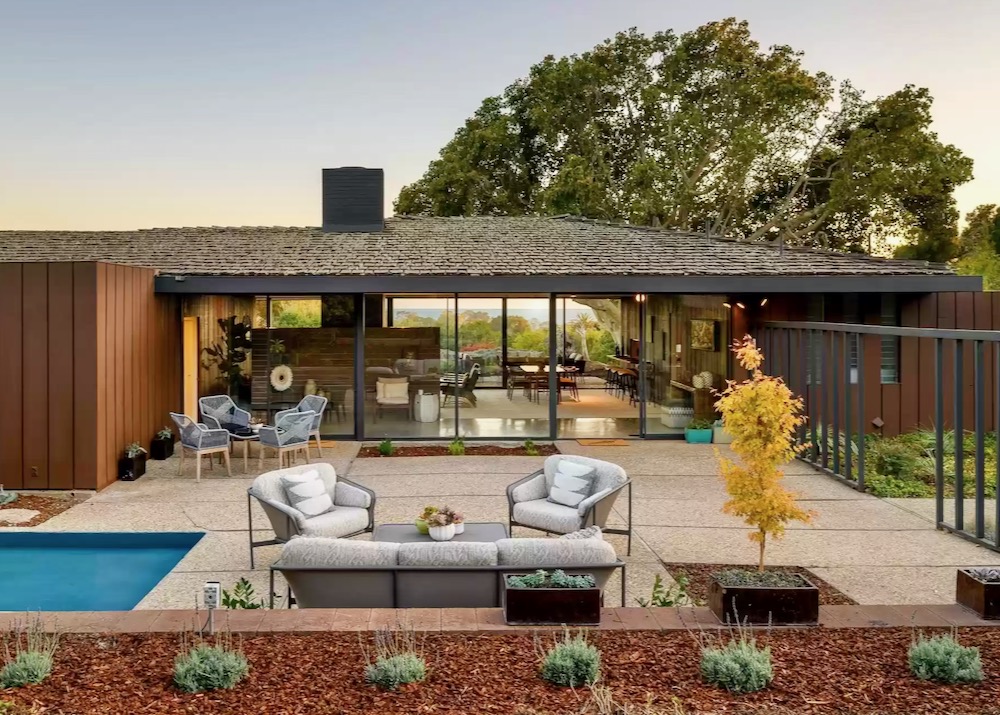 Fans of midcentury architecture will be drawn to 4539 Via Huerto ($4.699 million), designed by Carl Maston and built in 1956. The Hope Ranch house has suave lines, and it’s been maintained well. (Note the redwood paneling.) The kitchen and bathrooms have to be updated, however, and the floor plan hasn’t aged well, with the two guest rooms right off the primary bedroom (and sharing a hallway bath). The question is whether someone will buy it and preserve it or expand it to better suit how people live today. Either way, the 1.3-acre lot is pretty juicy. P.S. That’s a water feature, not a pool.
