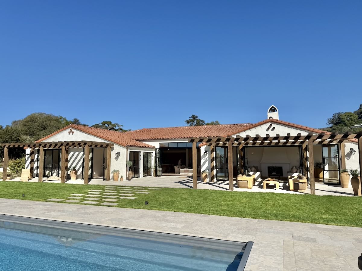 Spec reno—in essence a new-build—of a 1971 single-level Mediterranean on 3.48 acres in Hope Ranch.