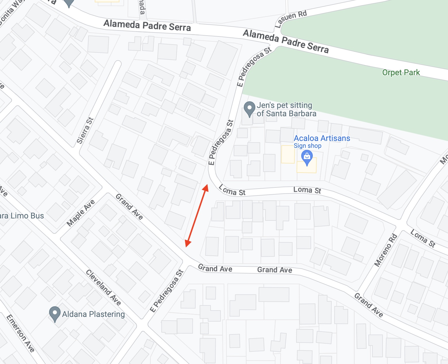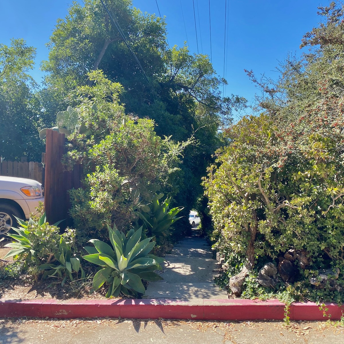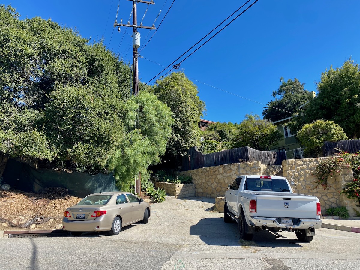 ••• And thanks to S. for pointing out that I missed the “secret” staircase that links E. Pedregosa Street between Grand Avenue and Loma Street. The first photo below shows the southern end (the stairs are between the two vehicles); the second photo is of the northern end, which comes out on a Loma Street spur.