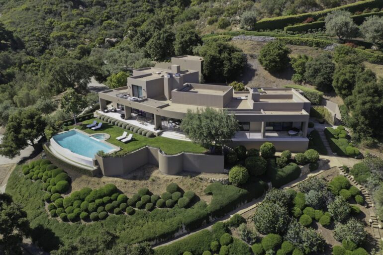 1130 E. Mountain Drive ($12.995 million) is a four-bedroom house, built in 2003, way above E. Mountain Drive proper. The architecture is that “contemporary” style not made much anymore, and the putty color does it no favors, but the streamlined interiors are easier to update than, say, ersatz Mediterranean. And the views are as astounding as you’d expect.