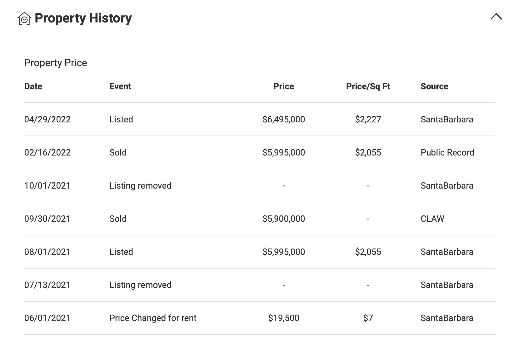1123 Glenview Road, on the south side of Pepper Hill, is a hot potato: the 1981 house sold for $5.9 million in September 2021 and again for $5.995 million two months ago [see below]. Now it’s back for $6.495 million, and there’s no reason to believe anything has changed. The ocean views are swell, but the floor plan has challenges, such as the L-shaped kitchen. [Update: Realtor.com includes the sale mentioned above, but it appears to be wrong.]