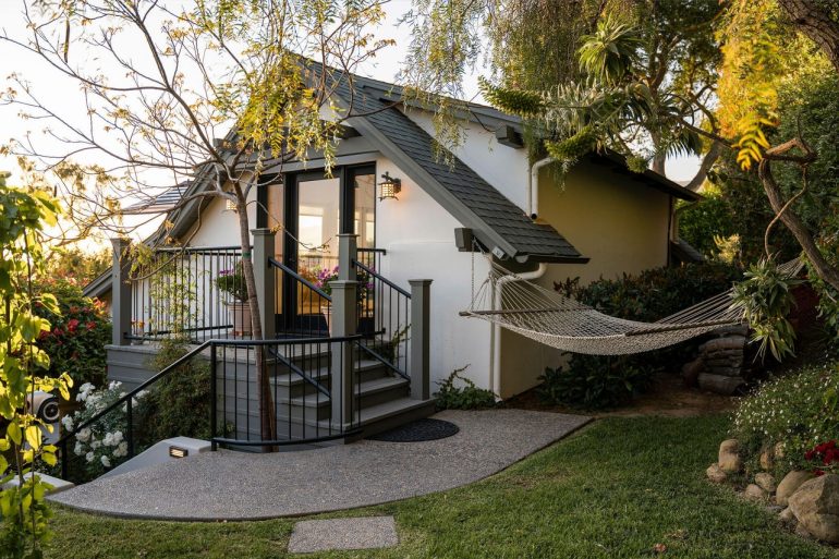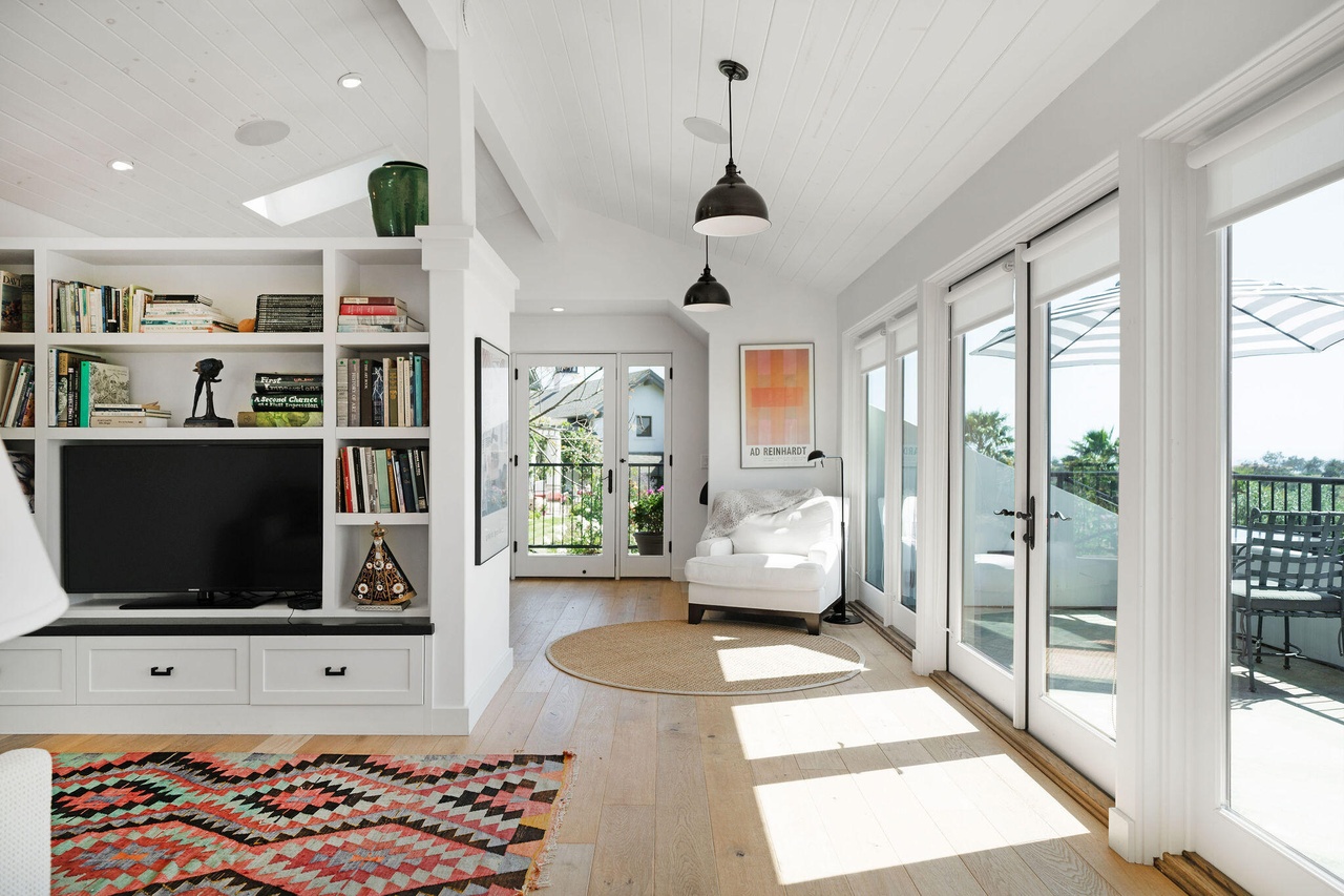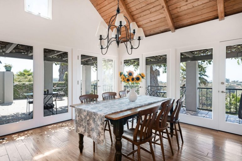 The 1939 house at 865 Romero Canyon Road ($6.995 million) is a total redo, but there’s historical charm—check out that ceiling in the outbuilding—and 2.81 acres of land.