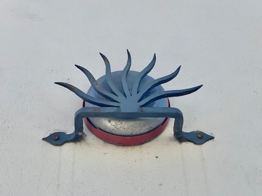 The former NS Ceramics showroom—a terrific piece of real estate—is part of the News-Press complex, but it’s empty. I always get a little kick from the decorative metalwork protecting an alarm.