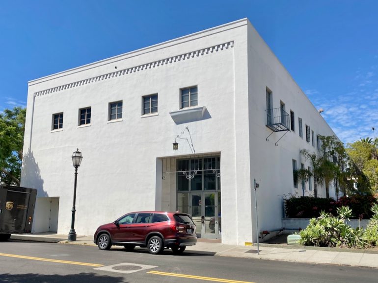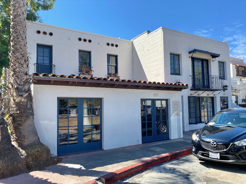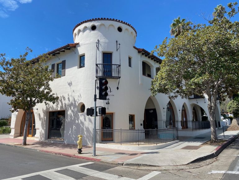 Not until this wander around El Paseo did I realize that the complex includes a relatively large office building. (Who looks up?) The second photo shows it from Canon Perdido. One tenant—the primary one, judging from the sign on State Street—is LogicMonitor, “the leading SaaS-based unified observability and IT operations data collaboration platform for enterprise IT and managed service providers.” Who would’ve guessed that a post about the Presidio would include so much tech/business jargon?