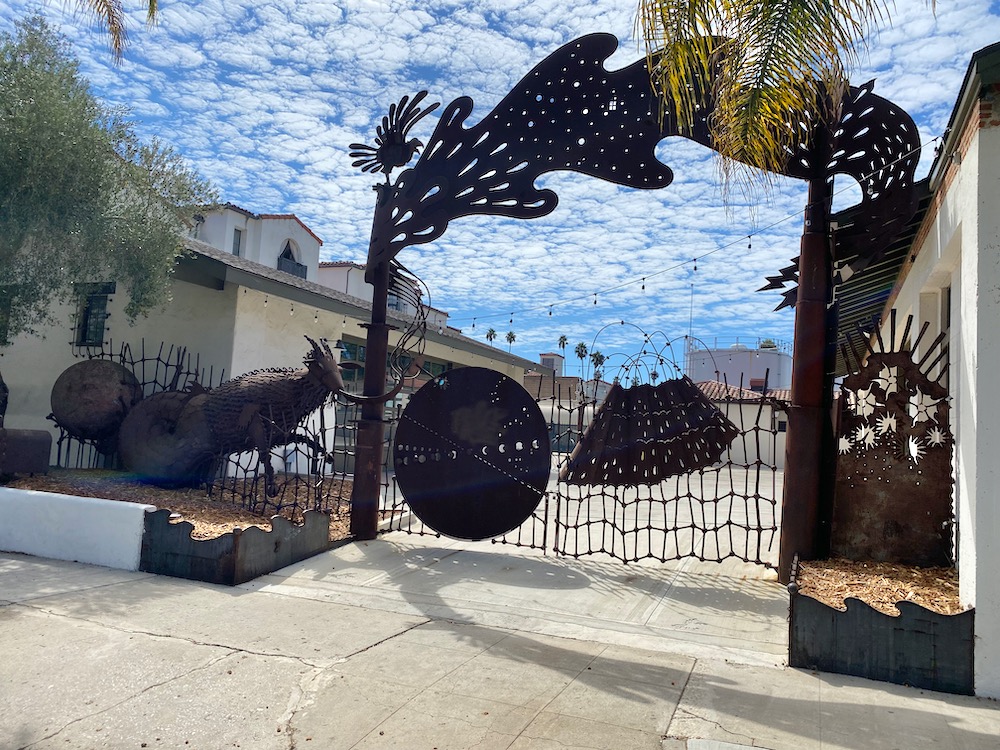 I parked outside the Community Arts Workshop at Garden and Ortega, where I took the opportunity to admire Dave Shelton’s marvelous gates. The last photo is atilt because I had to dash into Garden Street, and while I love doing Siteline, I’m not prepared to die for it.