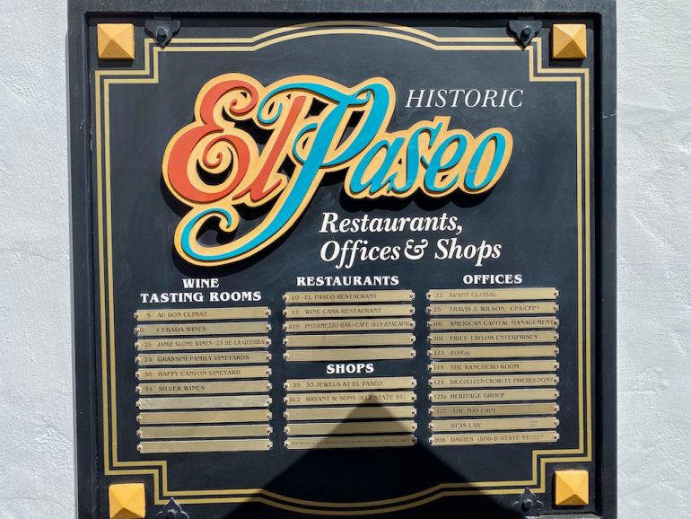 I rarely have reason to visit the El Paseo complex, directly behind Casa De La Guerra, but whenever I do, I’m just delighted by it. I can still remember the first time I wandered in from Anacapa, feeling like an explorer as I turned this way and that, ultimately ending up on State Street. It’s fantastically fun architecture. So much of the charm of downtown lies not just in the preserved architecture but in the porousness, something you don’t see much of in the United States.