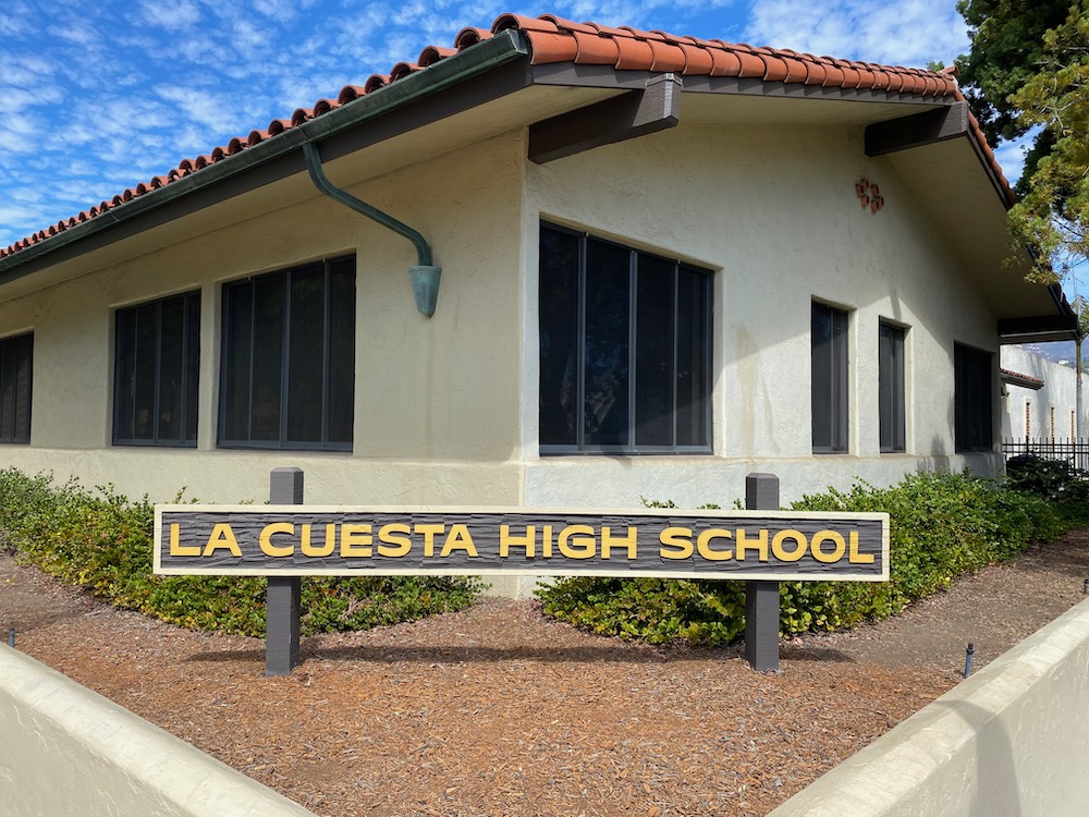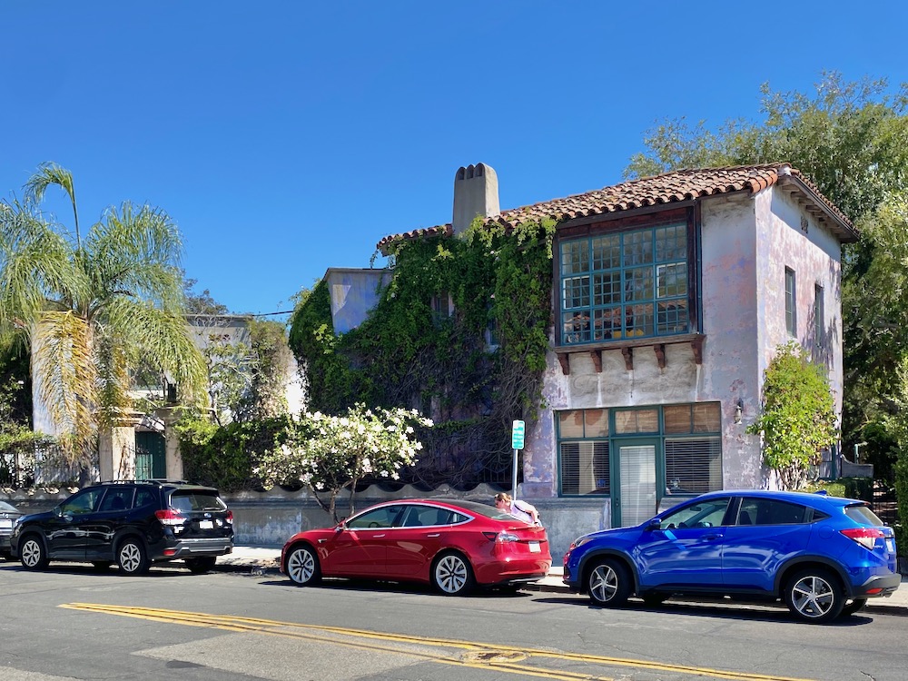 On to lovelier things, like the font on the sign at La Cuesta High School (“a comprehensive continuation high school designed to help students recover credits at an accelerated pace”) and the two houses on Ortega east of La Paloma Cafe.