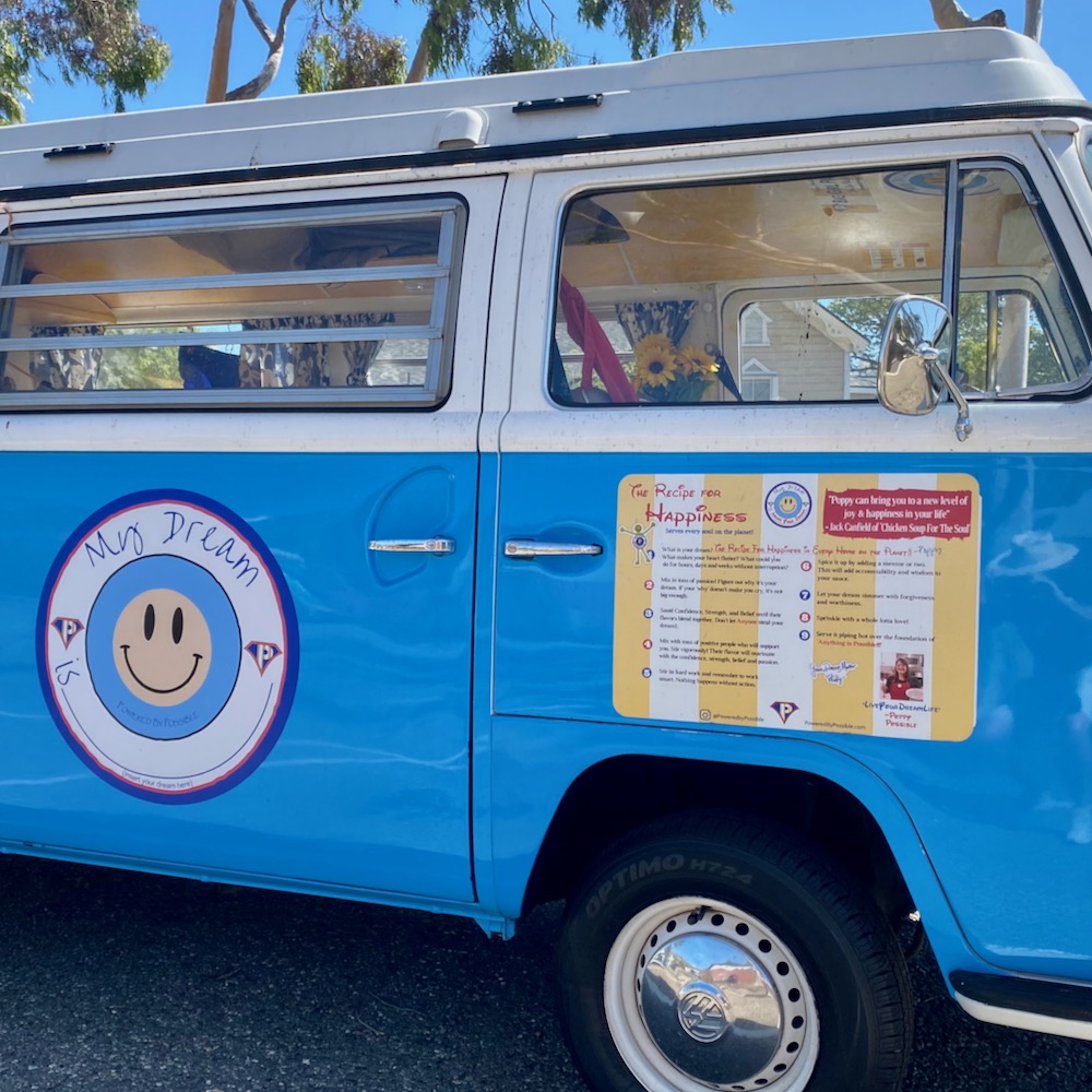 In the parking lot next to the Polar Bear kids’ clothing shop—which is celebrating its fortieth year in business—I came across the Volkswagen van of Diane “Poppy” Popovich, a.k.a. Poppy Possible, a “DreamMaker, Speaker, Author, and Thought Leader.”