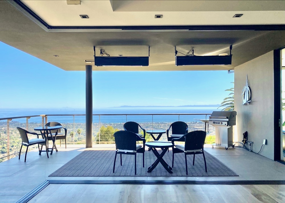 Approaching 20 Camino Verde ($10.85 million), on a stub of a street off Las Alturas, you might think that it probably has nice views. The views are downright sensational, as the house is perched at the edge of a ridge, looking out at the mountains, the coast to the south, the ocean and islands, and the city and harbor. While hardly showy, the architecture makes the most of the location, with floor-to-ceiling windows and glass doors that slide entirely into the wall, seamlessly blending indoor and out. (I’m breaking one of my rules and running my own photo, above, because I wanted to try and convey the experience of the fresh air wafting through the house.) There are four bedrooms, with the primary on the main (upper) floor.