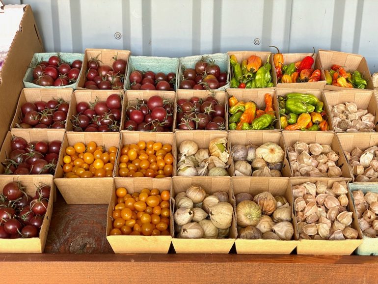As at Buttonwood, Roblar Winery‘s new farmstand is on the honor system. And the bounty is impressive, although probably even better earlier in the day. I was tempted to surprise my husband with a $50 wine barrel planter. Luckily, it wouldn’t fit in my trunk.