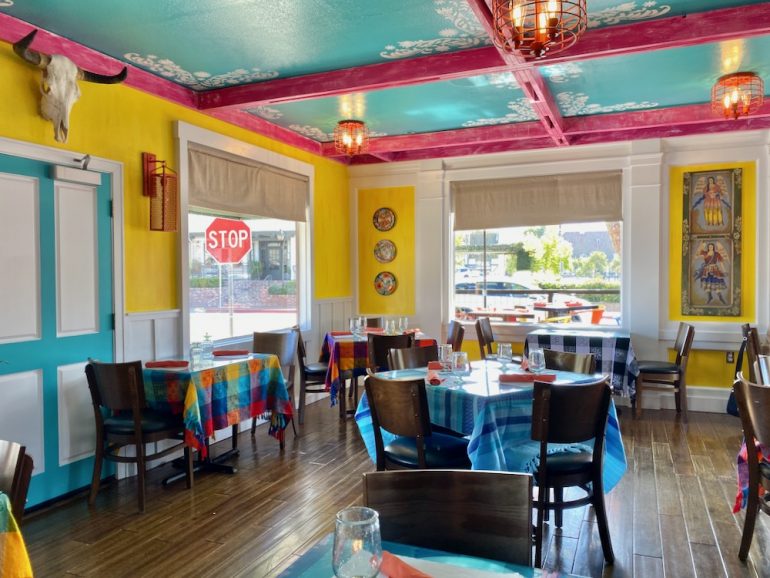 I met a friend for lunch at Campo del Sol, the new Mexican restaurant from the Coast Range folks in the former Succulent Café space in Solvang. While the inside has been painted in festive colors, the outdoor tables are more winning, assuming the weather isn’t extreme. I thought the fish tacos were excellent, as were the two salsas that showed up with the chips.