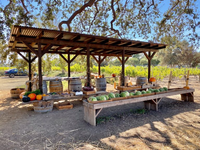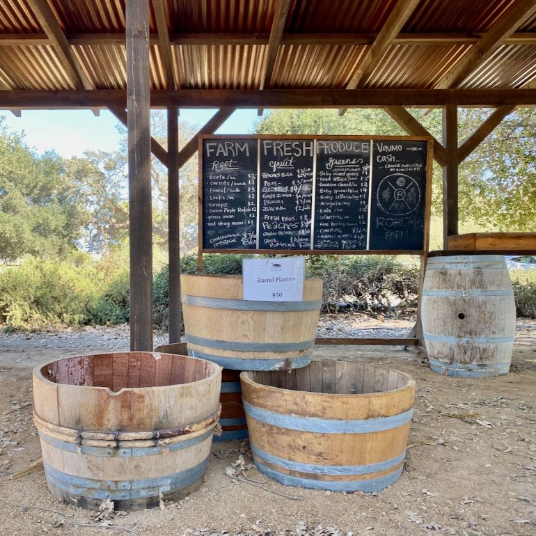 As at Buttonwood, Roblar Winery‘s new farmstand is on the honor system. And the bounty is impressive, although probably even better earlier in the day. I was tempted to surprise my husband with a $50 wine barrel planter. Luckily, it wouldn’t fit in my trunk.