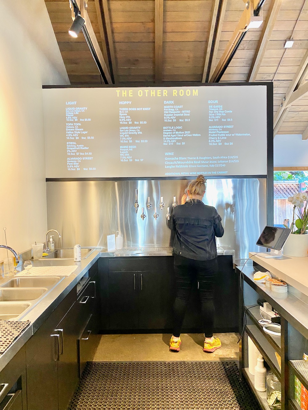 Last stop: The Other Room in Los Olivos. It’s a joint venture between folks from Companion Hospitality (Bell’s, Bar Le Côte) and The Backroom in Solvang. They’ve given the former Community Craft space (and before that, Figueroa Mountain taproom) a low-key makeover with a wooden banquette and David Shrigley prints. It feels like a clubhouse for people who work in the wine industry; sure enough, said Companion beverage director Emily Blackman, “tasting rooms close at 5 p.m., and by 5:30 every face we know from tasting rooms is here.” While the focus is on beer, particularly ones you don’t see much in the valley, wine isn’t totally forsaken. The “ever-changing wine retail is for people who geek out on wines—international, small allocations, hard to find here.” At the moment, food is limited to tinned fish served alongside Ritz crackers—the perfect high-low accompaniment to that $445 bottle on the bottom shelf of the cabinet.