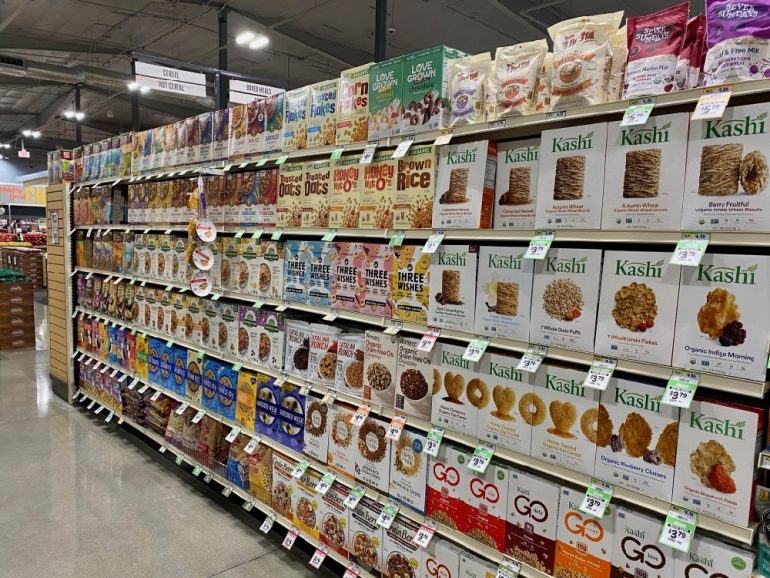 It’s somewhat odd that Sprouts chose a location just three blocks from Trader Joe’s, since they offer a similar shopping experience. They’re of roughly equivalent size, with the same folksy aesthetic—faux barn wood above the dairy section, corrugated metal paneling, groaner puns (“utterly good cheese”), and so on. While Trader Joe’s relies far more on its private label, the merchandise at Sprouts is more akin to that at Lazy Acres—with a lot of outside brands (but not mainstream ones like Best Foods, Kellogg’s, or Coke), and an emphasis on healthfulness.