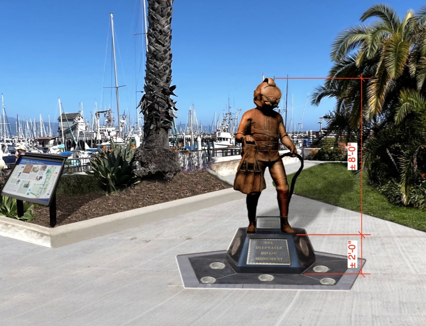 ••• From Monday’s agenda of the city’s Architectural Board of Review: “a proposal from the City’s Arts Advisory Committee to install a bronze statue honoring the rich diving history in Santa Barbara. The project will be fully funded by the Santa Barbara Diving Monument Committee and provided as a gift to the City of Santa Barbara and Waterfront Department.” It’ll be 10 feet tall, as you can see from the rendering.