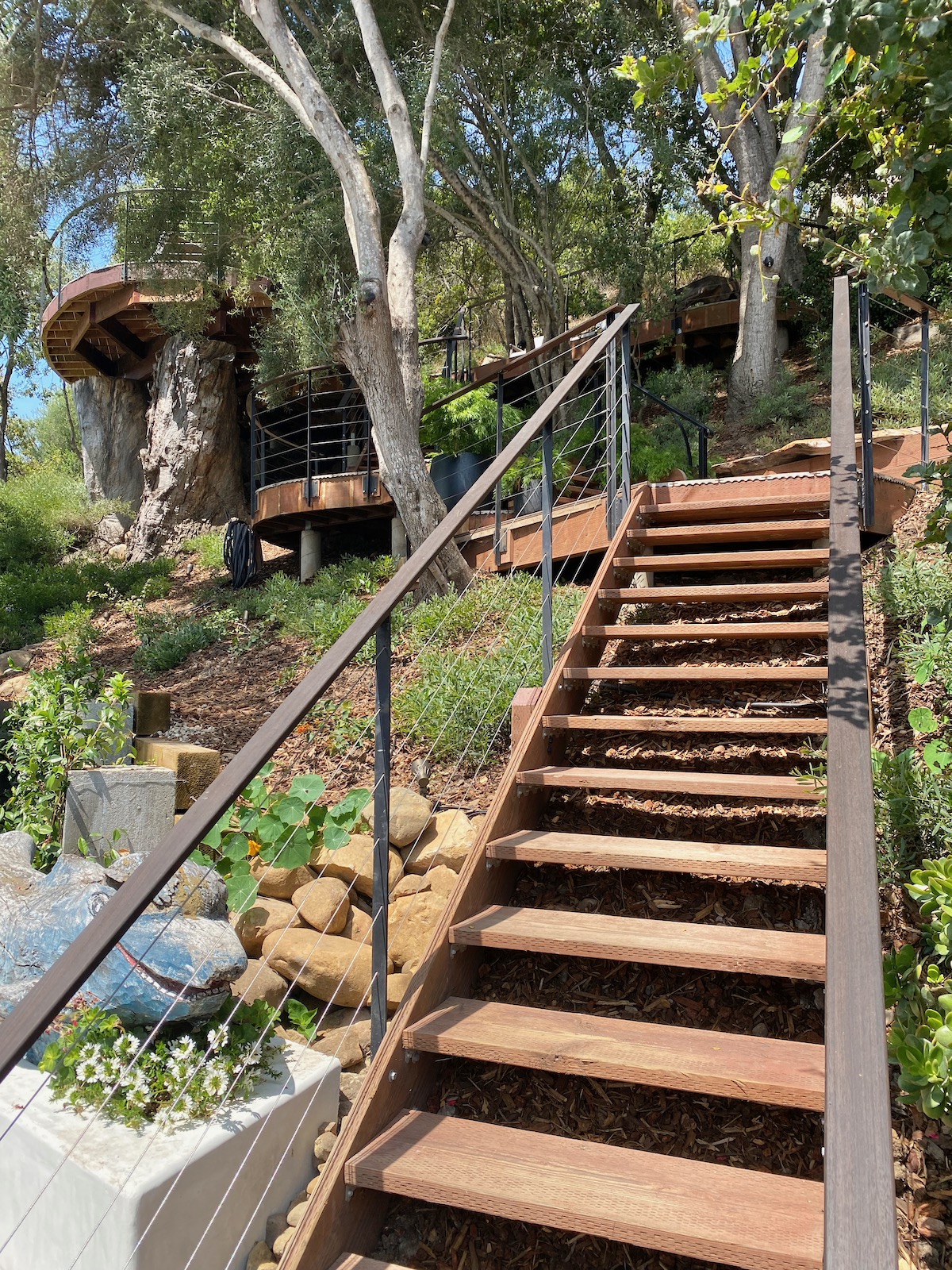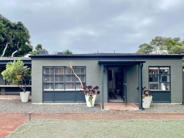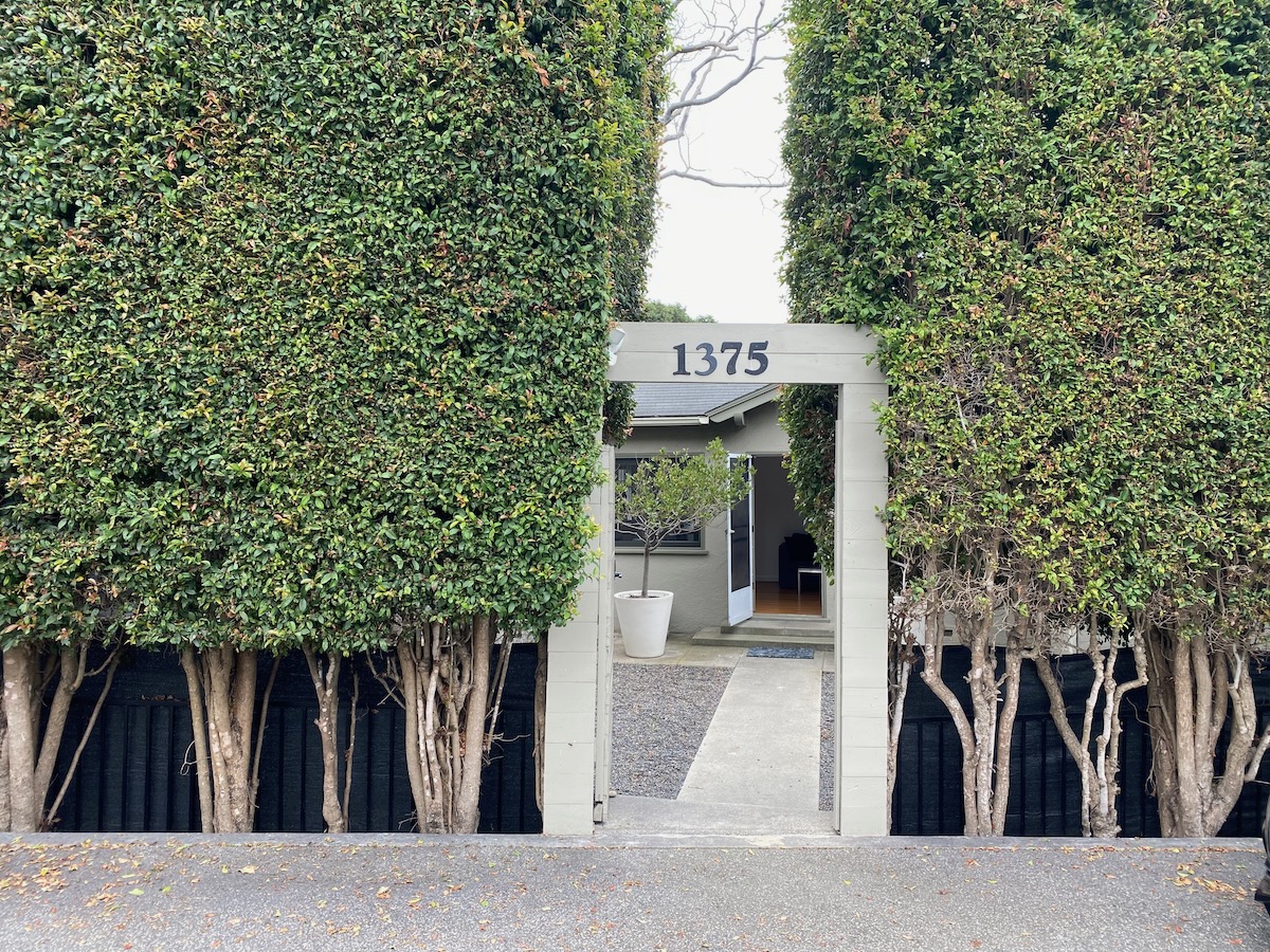 Single-family home configured as a stylish duplex, with a cool deck on the hillside above and a gate leading to the CVS parking lot.