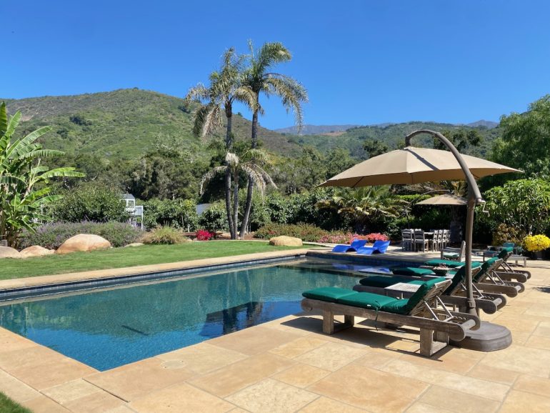 The Hollister Ranch compound of Titanic/Avatar director James Cameron and his wife, Suzy Amis Cameron. It’s a full 102-acre share, and besides the main house (8,000-ish square feet, there’s a guest house, two barns, and ‘a 4,795-square-foot equestrian facility that is next to the Ranch offices with caretaker’s quarters, including four apartments that feature six bedrooms and six bathrooms.'”