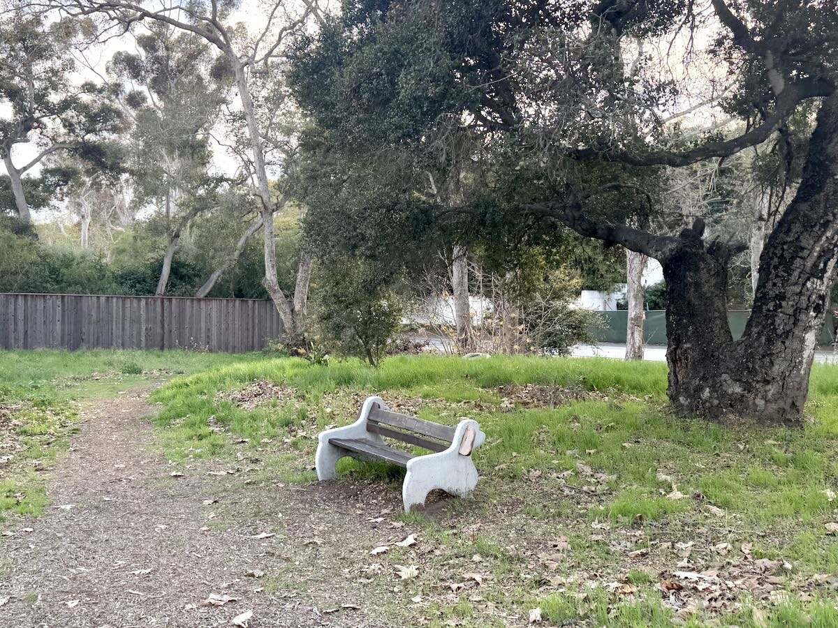 Inspired by his late golden retriever, Ridge, Jared Darlington got the idea to create a dog-shaped bench. And he had the skills to see it through: before moving to Santa Barbara in 2018, he spent most of his career in Boulder, Colo., as a carpenter, contractor, and woodworker. So he came up with the design—dogs on each end, with a bench in between and a shelf in back that, from certain angles, looks like it’s being held in the dogs’ mouths—and researched how to make it comfortable. “I must’ve sat on 20 to 40 benches around town to get the right configuration,” he says. “The one at Sylvan Park was the best.”