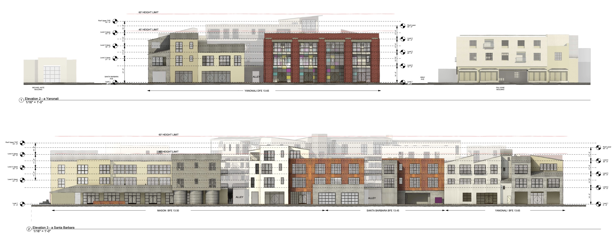 ••• The full-block development proposed for the Funk Zone goes in front of the city’s Architectural Board of Review on Monday. It’s listed on the agenda as 121 E. Mason, but it includes everything between Yanonali Street, Santa Barbara Street, Mason Street, and Gray Avenue (including the Dart Coffee Garden and other old structures):