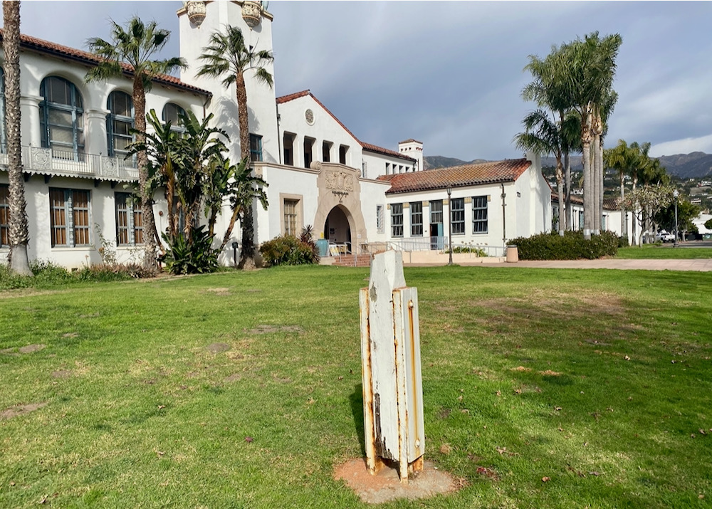 ••• Someone was caught after trying to cut down Santa Barbara Junior High School’s wooden (!) flagpole with a saw. The pole was damaged badly enough that it had to be removed. —from a SBPD press release on Nextdoor