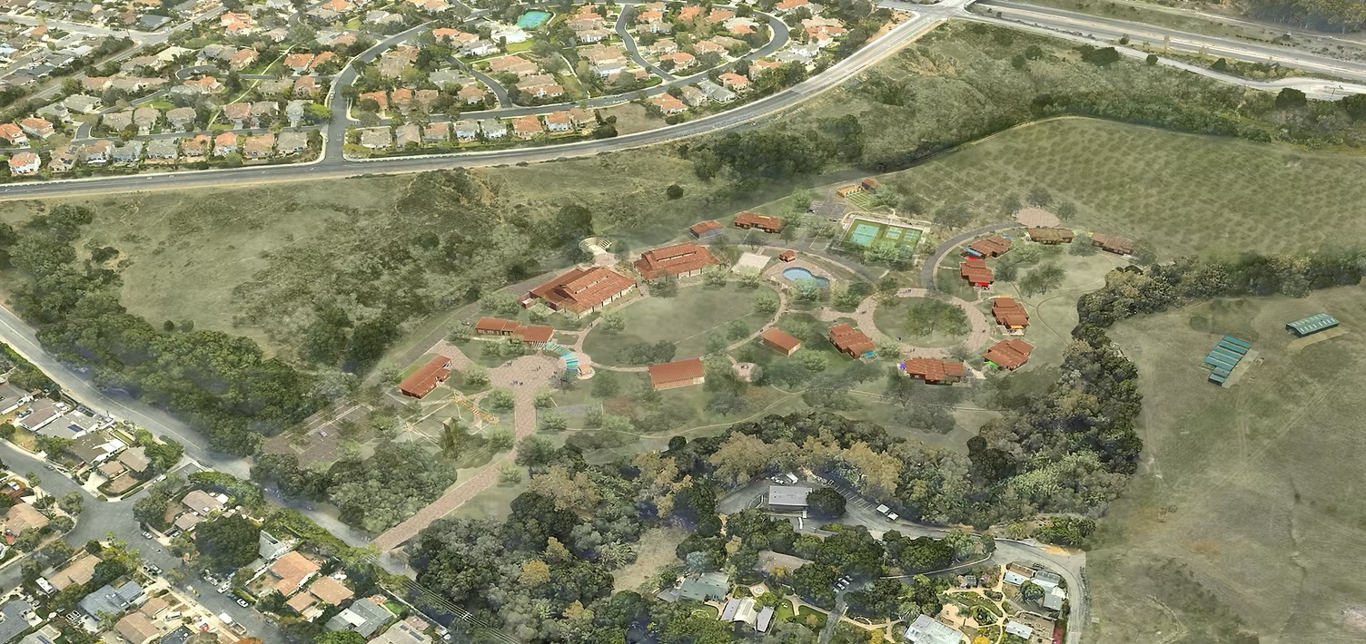 ••• Katy Perry’s Firework Foundation has submitted plans for conceptual review to the South Board of Architectural Review for a youth camp called Gratitude Canyon at 183 Winchester Canyon Road, a 110-acre lot at the northwest corner of Calle Real and Cathedral Oaks Road in Goleta. The Gratitude Canyon website describes it as “a place of inspiration and access for underserved youth from the surrounding region and local community, offering programming rooted in the arts, nature exploration, and creative expression. […] The proposal limits built structures to roughly 3% of the site, preserving approximately 97% of the property as open landscape including restored habitat areas, orchards, pathways, outdoor recreation spaces, and nature-based use areas.” And according to the SBAR agenda, the plan calls for “eight cabins, counselor housing, a director’s residence, gymnasium, dining hall, pool, and associated landscaping improvements of approximately 55,350 square feet.”