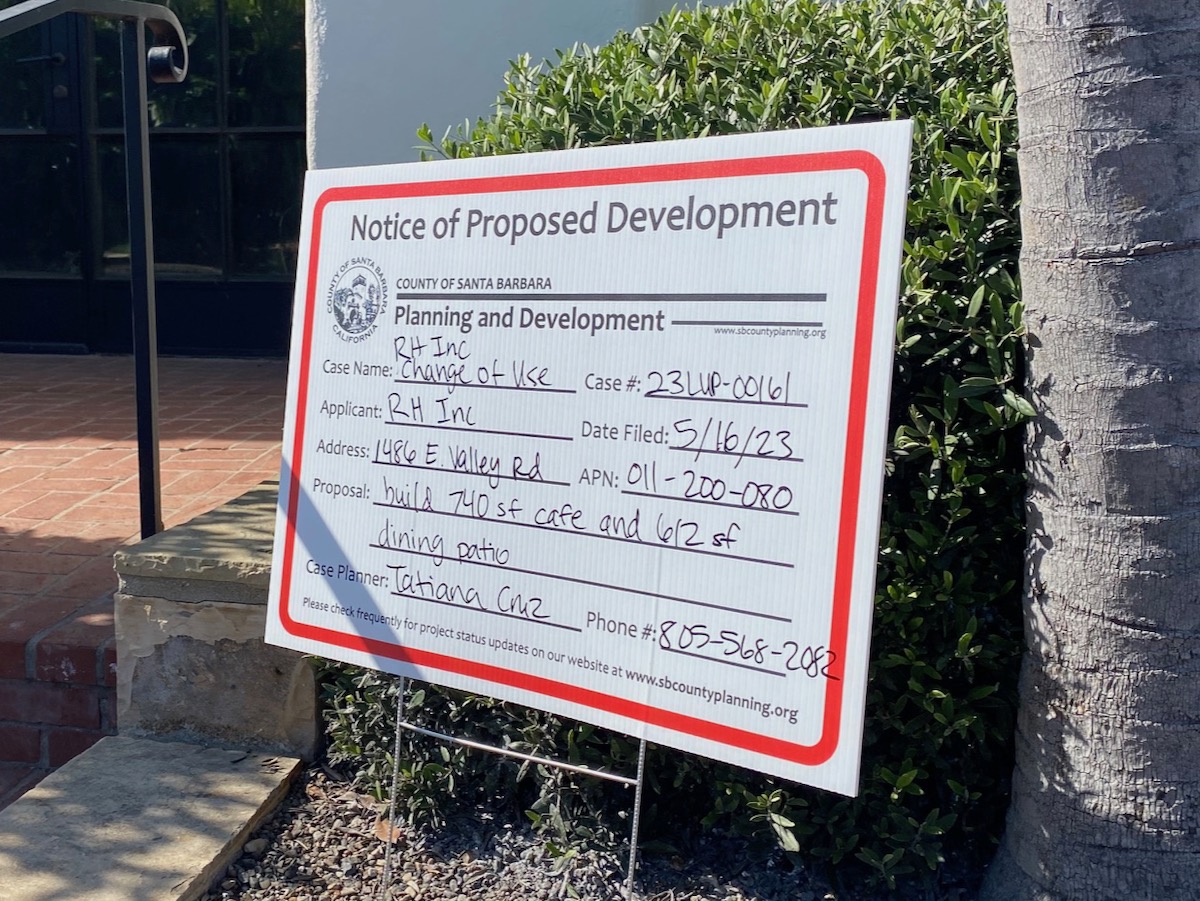 ••• A notice of development posted outside the future home of RH (Restoration Hardware) in Montecito’s Upper Village says the plan is to “build 740-square-foot cafe and 612-square-foot dining patio.” Semi-related: I can’t think of another brand that has successfully moved from mid-market to high-end, the way RH is trying to with its push into hospitality, real estate, and so on.