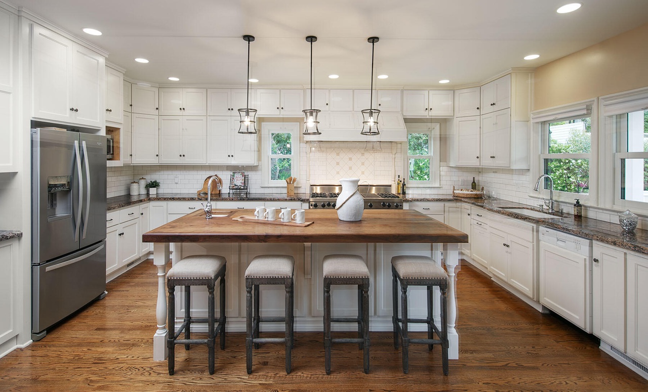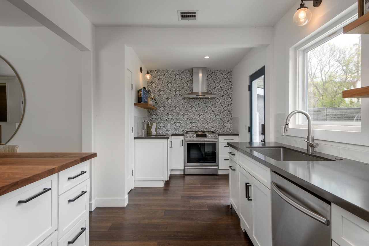 ••• 11 Vista del Mar Drive ($2.195 million): 1956 three-bedroom near Hendry’s Beach; the kitchen is in two parts (below).