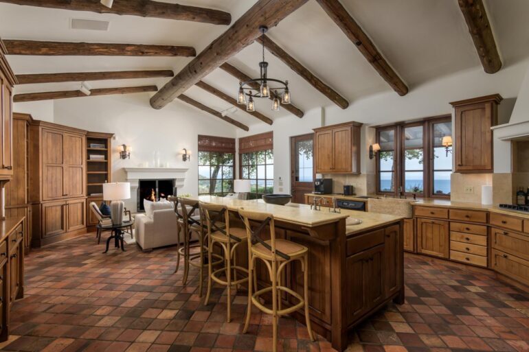 To reach 439 Lambert Road ($10.9 million), just west of Toro Canyon, you drive all the way up Lambert and then up a long shared driveway, which puts you near the southern end of Freehaven Drive. The 1999 hacienda-style four-bedroom is positioned atop a knoll, so you get wide views and excellent privacy. There’s potential here if you update the surfaces, although I’d prefer an actual dining room. And personally, I’d use the “reading loft” for storage—it’s too small for adults and too nice to lock the kids inside.