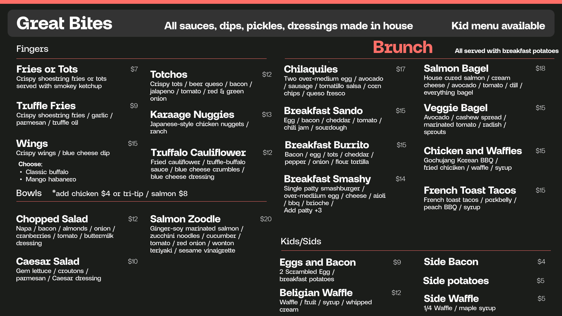 Our restaurant menu showcases incredible dishes heavily influenced by Korean flavors and traditional dishes. Lunch offerings will include bento boxes, and for dinner, the spotlight is on bibimbap: a sizzling stone bowl filled with rice, veggies, and your choice of protein. All dishes will be served with a variety of classic Korean side dishes. We’re keeping some local favorites too! The skewers and banh mi from Three Monkeys will remain on the menu.