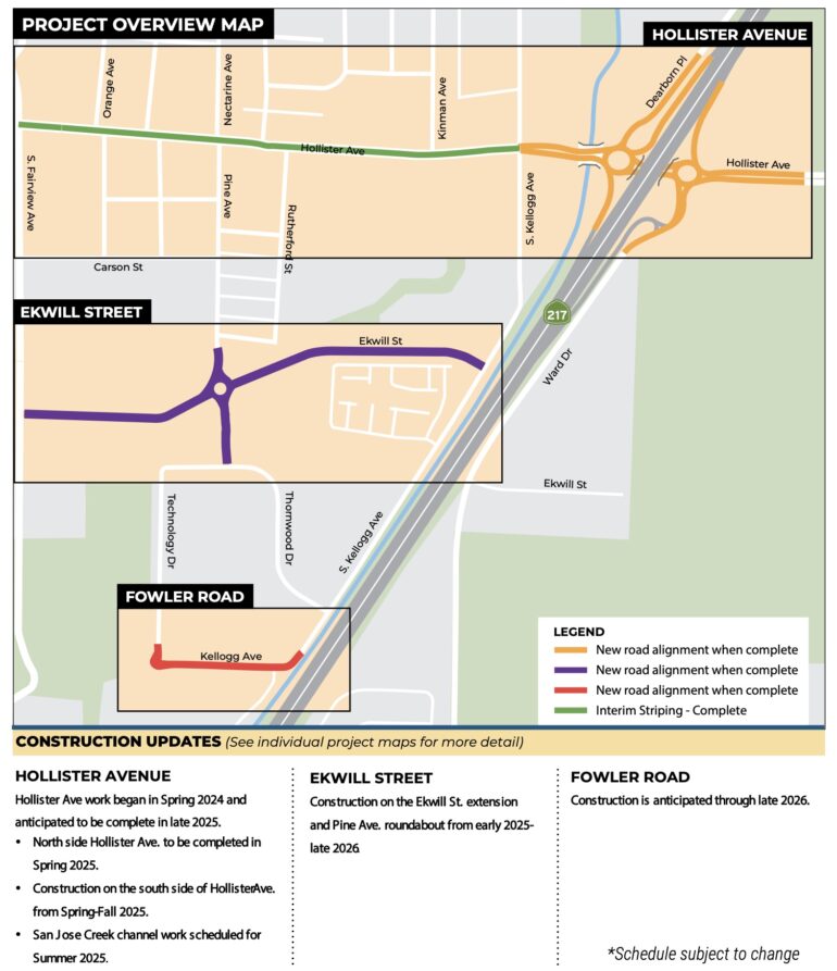 ••• The city of Goleta says that the two roundabouts at Highway 217 and Hollister Avenue, part of Project Connect, should open by the morning of March 2.