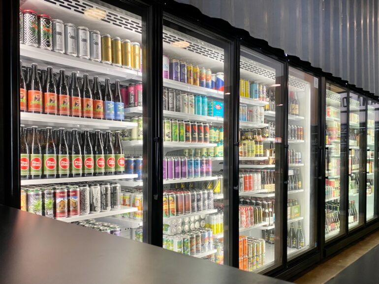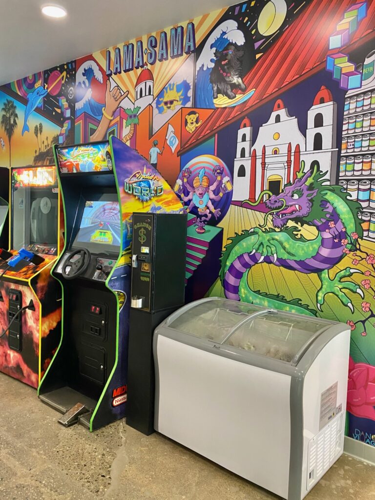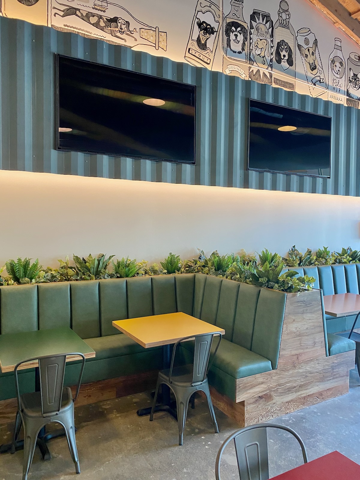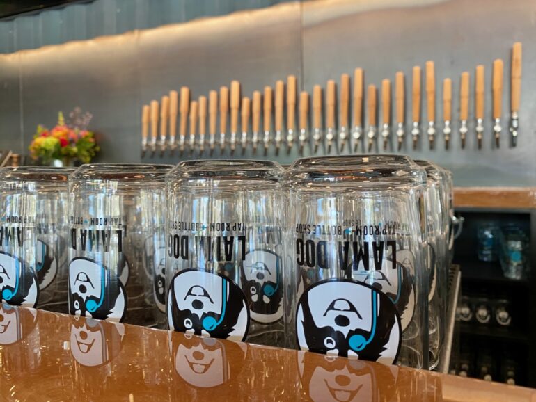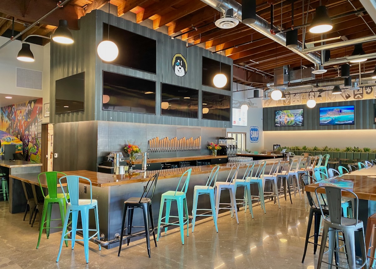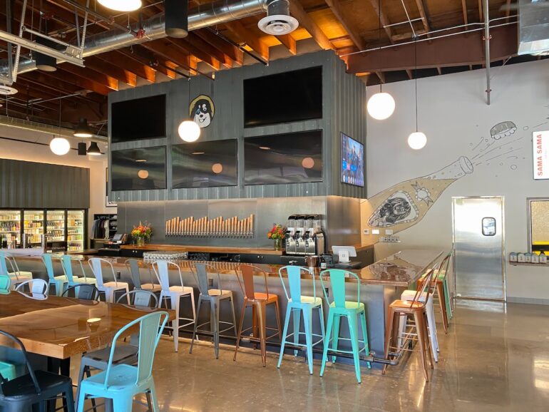 At 5,000 square feet, with capacity for 175 people, Lama Dog Uptown is far larger than the Funk Zone outpost, with many more TVs. And there’s more beer: 30 taps (as opposed to 20 in the Funk Zone), along with eight wine taps, sake, plentiful N/A options, and slushies made with hard kombucha. As at Lama Dog proper, the establishment also functions as an extensive bottle shop for to-go sales.