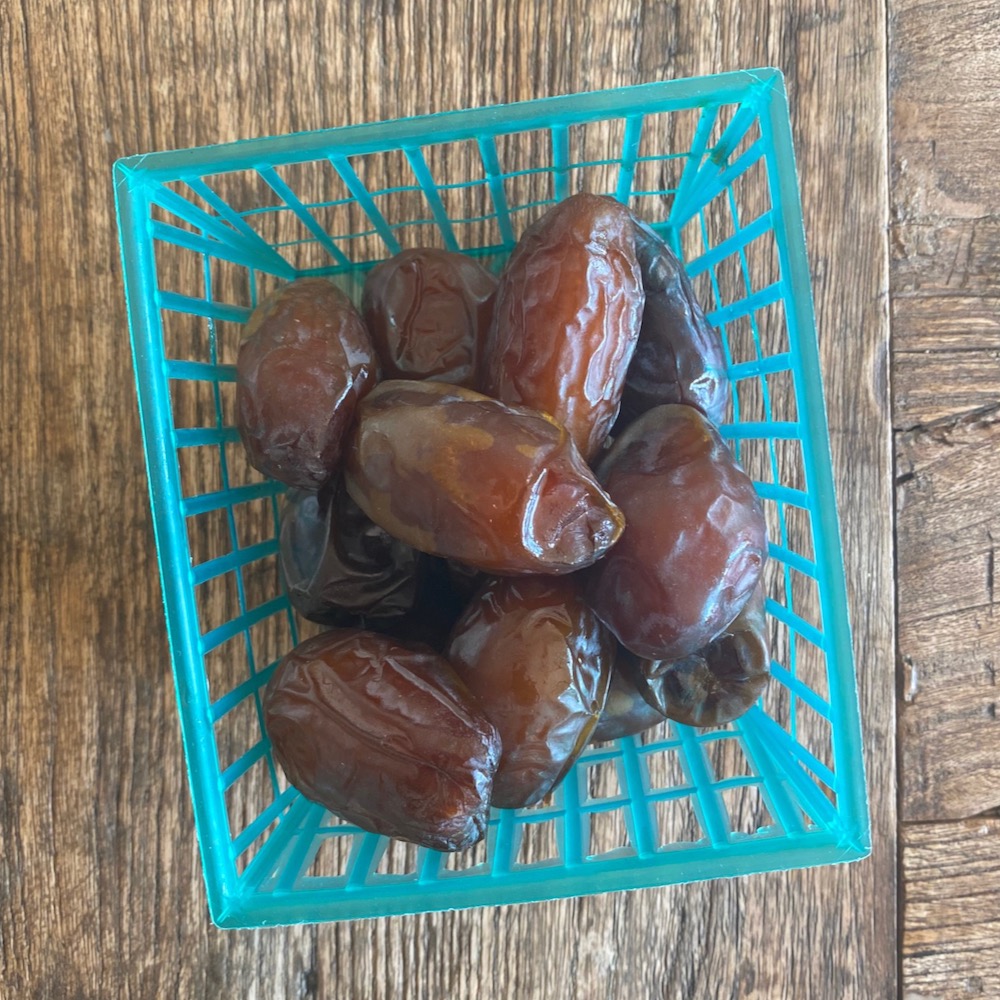 ••• The dates from DaVall Date Gardens, at the Saturday farmers’ market, are always good. But the “fancy” ones—such as the Medjools below—are next-level. Seek them out while they’re in season.