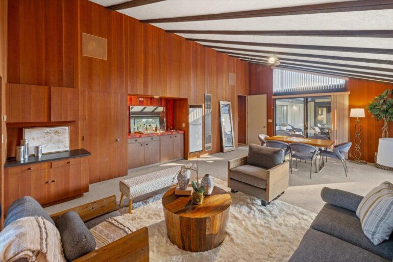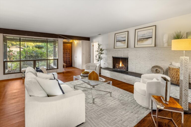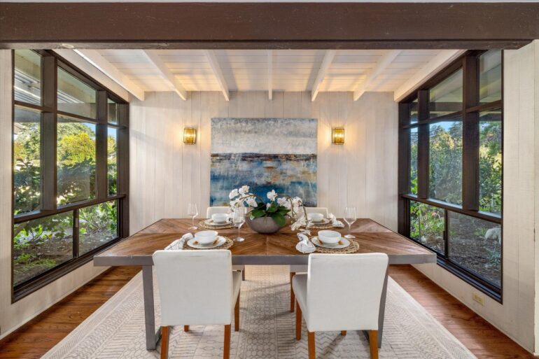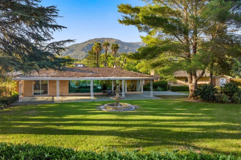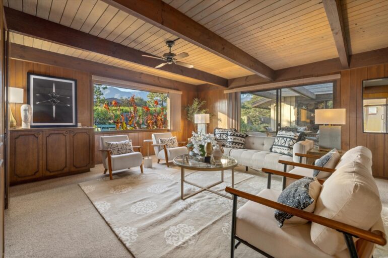 First up in this week’s time-capsule parade: 1480 Monte Vista Road ($5.5 million), on a cul-de-sac off San Ysidro Road (i.e., near the Hedgerow but not part of it). The street was developed in the 1950s, and while everything at 1480 Monte Vista needs to be redone—including the bedroom part of the floor plan—you can catch glimpses of how cool the house could be if brought back to its midcentury roots. Plus: fire pit seating for the entire block.