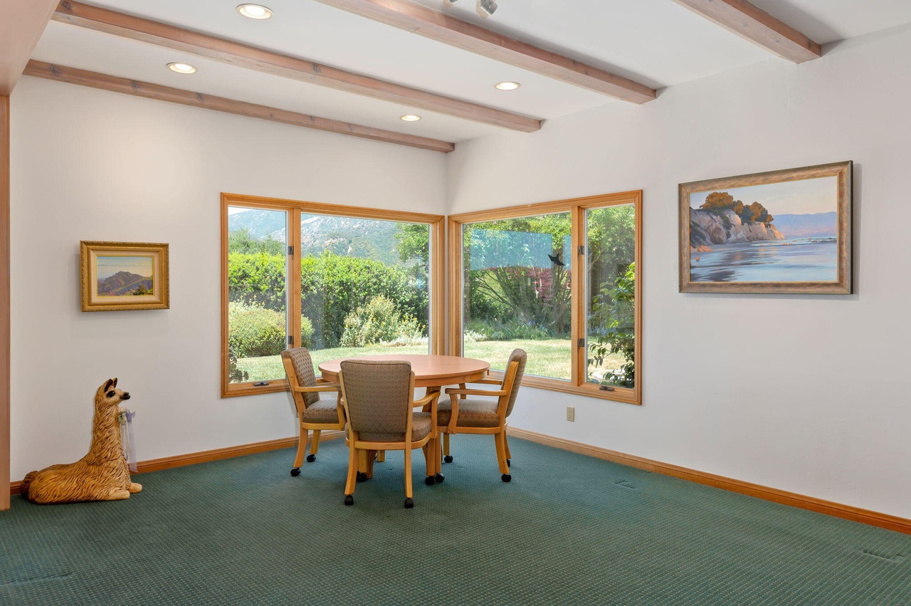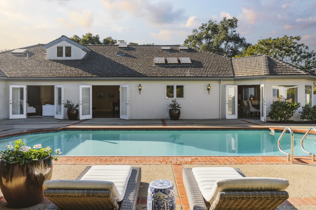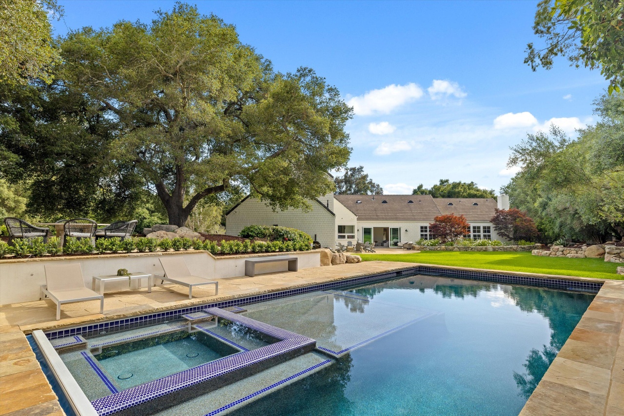 The 1970 house at 4660 Via Roblada ($6.995 million), on Hope Ranch’s prime Bendita/Roblada loop, has been cleaned up so that it almost looks like an East Coast colonial if you squint. (Love the white brick on the facade and the red brick coping around the pool.) And I bet it’s very livable. But popping some of those flat ceilings—or doing something to break up all that flat, white expanse—would’ve made a huge difference.