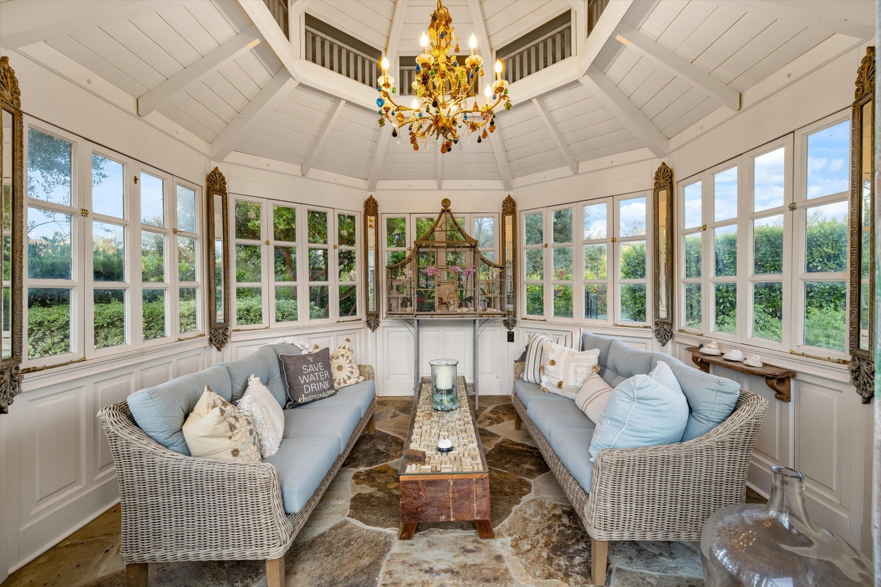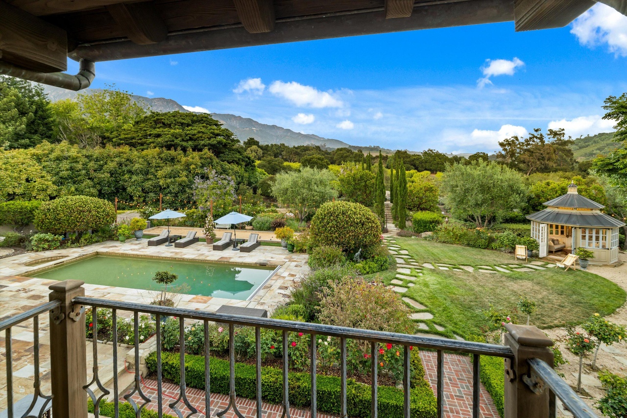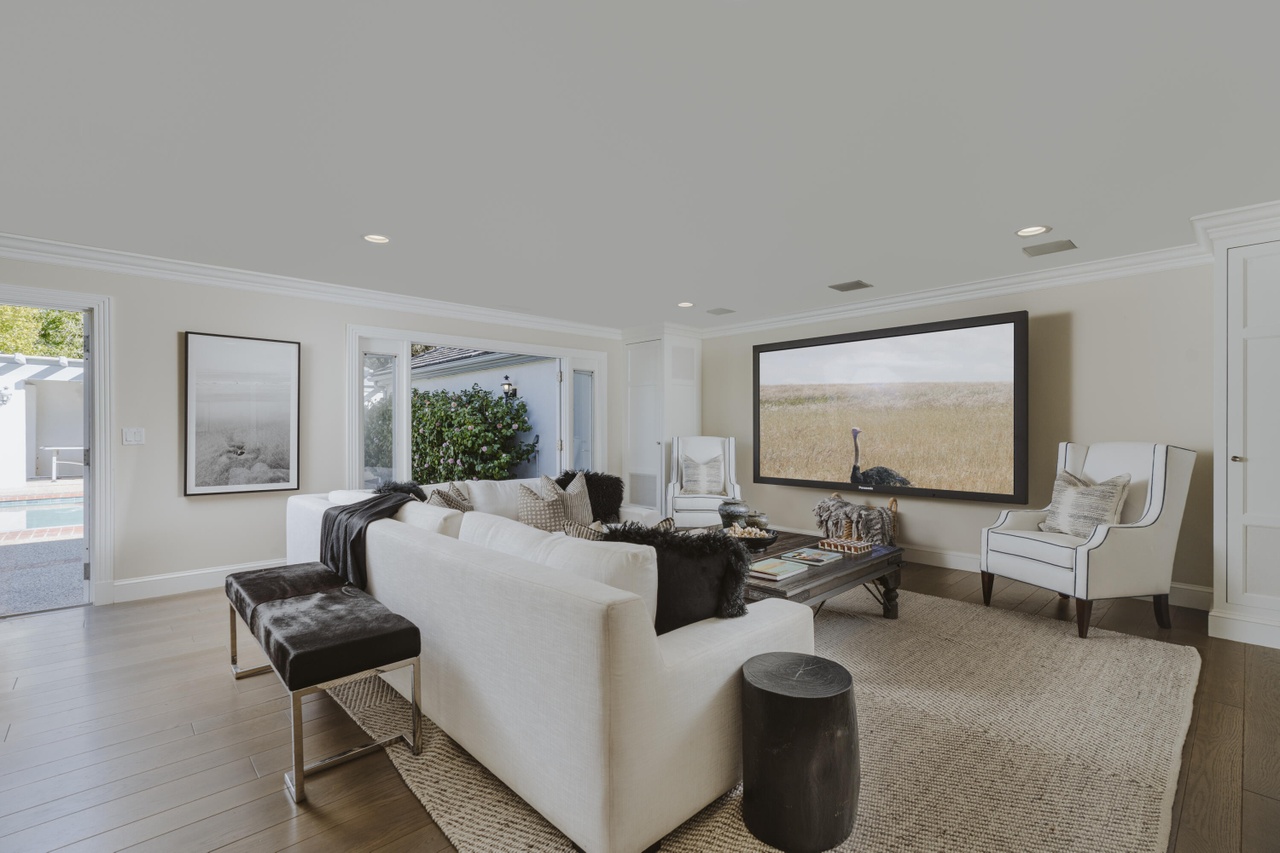The 1970 house at 4660 Via Roblada ($6.995 million), on Hope Ranch’s prime Bendita/Roblada loop, has been cleaned up so that it almost looks like an East Coast colonial if you squint. (Love the white brick on the facade and the red brick coping around the pool.) And I bet it’s very livable. But popping some of those flat ceilings—or doing something to break up all that flat, white expanse—would’ve made a huge difference.