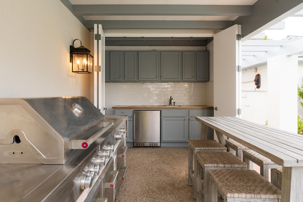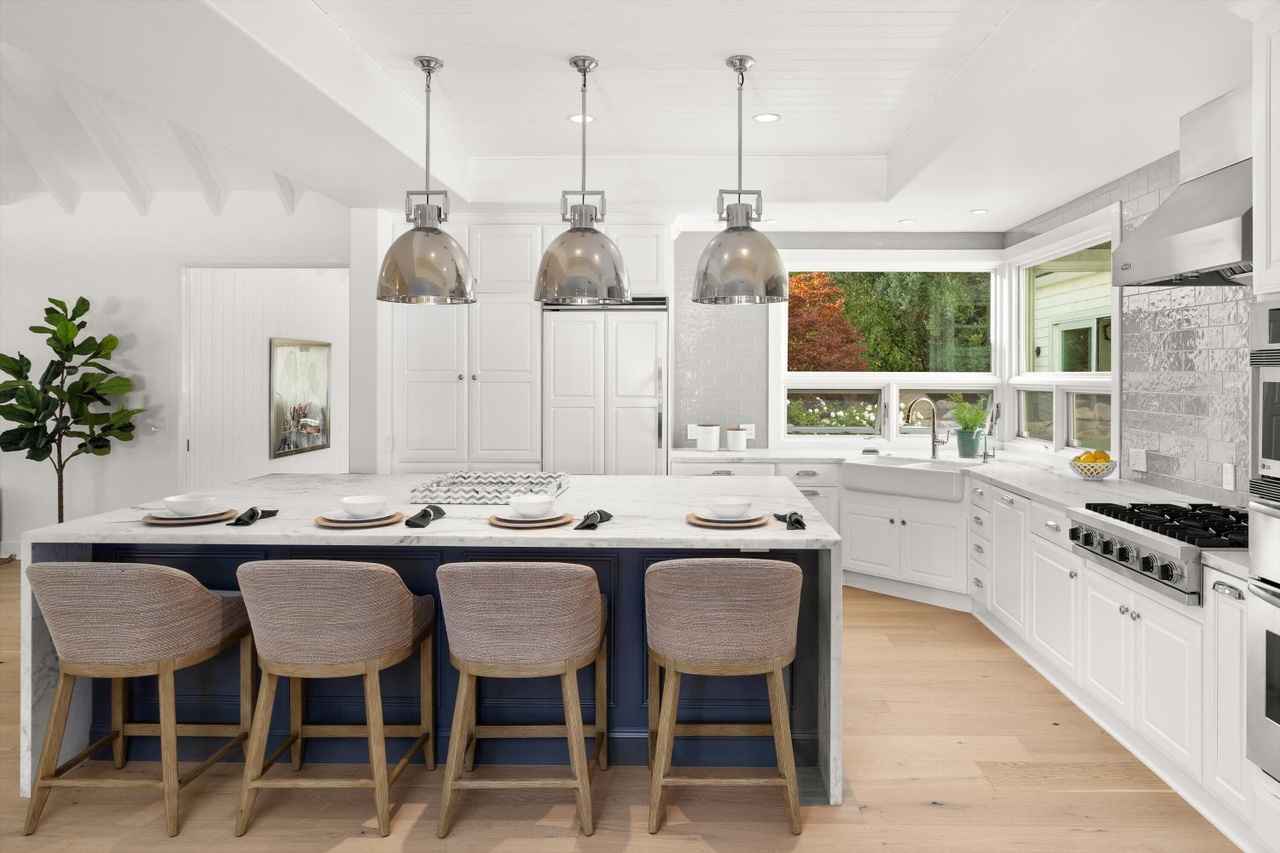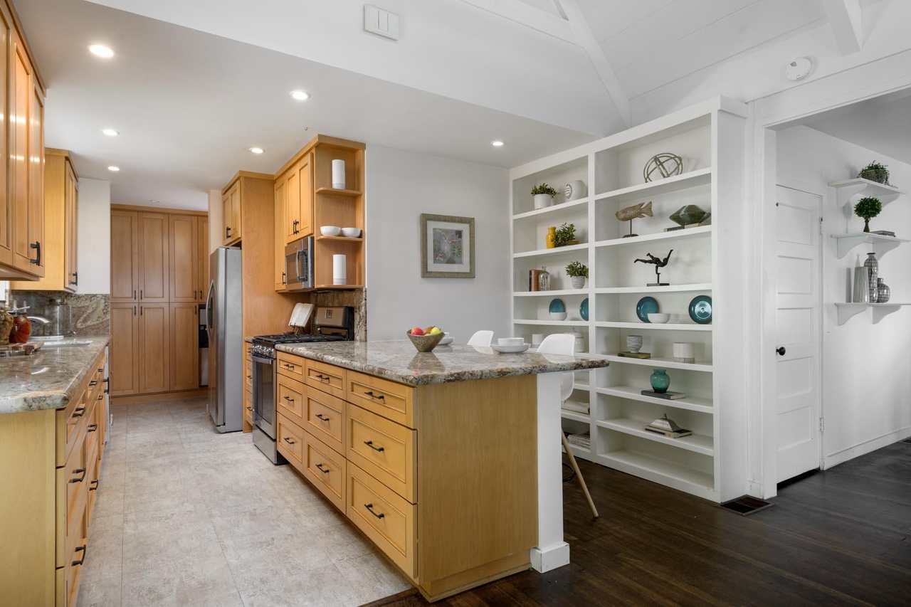 Located within Carpinteria’s Sandyland Cove enclave, 4315 Avenue del Mar ($12.5 million) is an unfussy, old-school beach compound. Even those committed to the way things were will likely feel the desire to update everything, and enlarging the kitchen is a must. P.S. For the love of all things holy, if you can see your roof from prime spots, such as the sweet deck off this primary, do not use asphalt shingles. (I like CeDur, particularly when it’s installed in a slightly erratic pattern.)