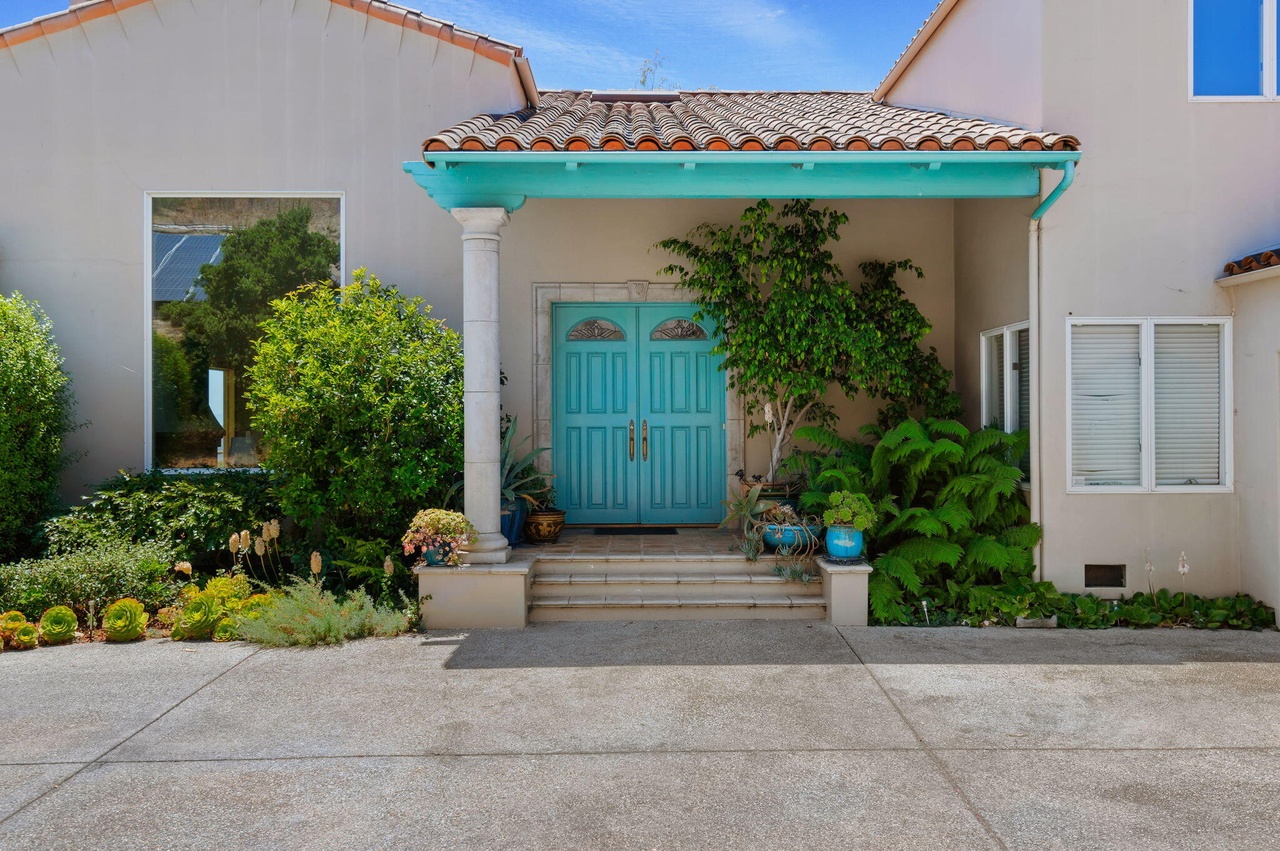 The parade continues in the hills above San Roque at 3770 Foothill Road ($6.5 million), built in 1990 on 13.28 acres but looking much older on the inside. Such devotion to turquoise! P.S. Staged? Not staged? Either way, wherefore the llama?